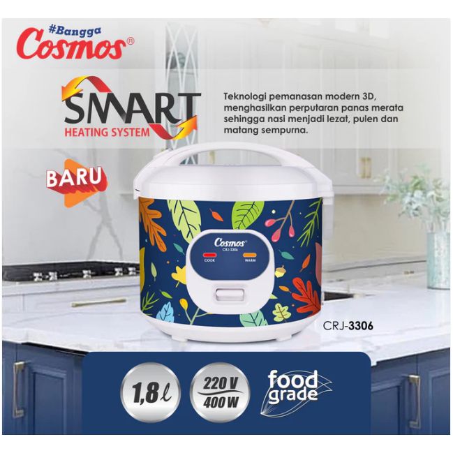 Cosmos Magic Com 1.8 Liter 2in1 CRJ3306 CRJ-3306 Rice Cooker Warmer Pemasak Nasi Low Watt Murah
