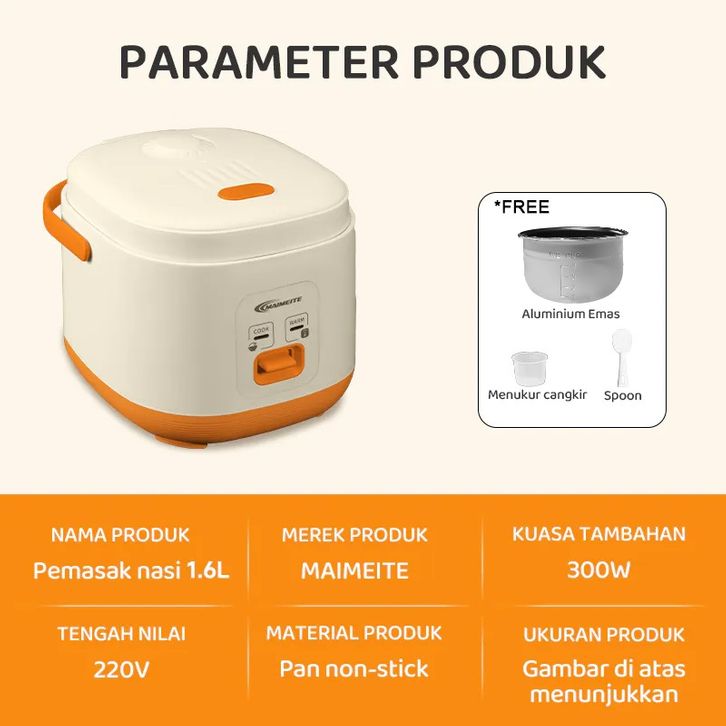 MAIMEITE Magic Com mini 1.6L Portable Travel version student version Oranye Multifungsi