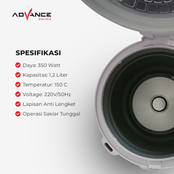 Advance G-12 Rice Cooker Penanak Nasi 1.2 Liter 350 Watt Garansi Resmi 1 Tahun