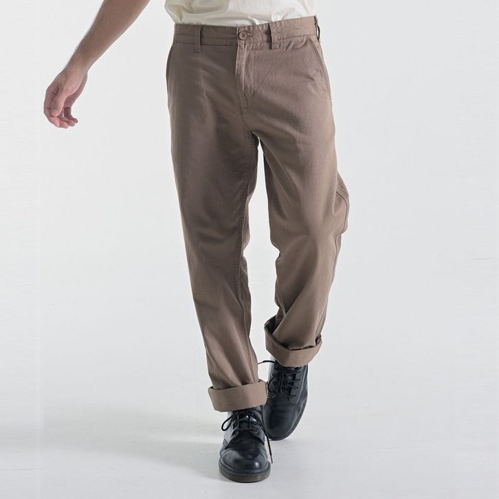 Moutley Celana Panjang Chino Straight Fit Pria Men's Troussers Formal Casual Outfit Coklat Tua 020423