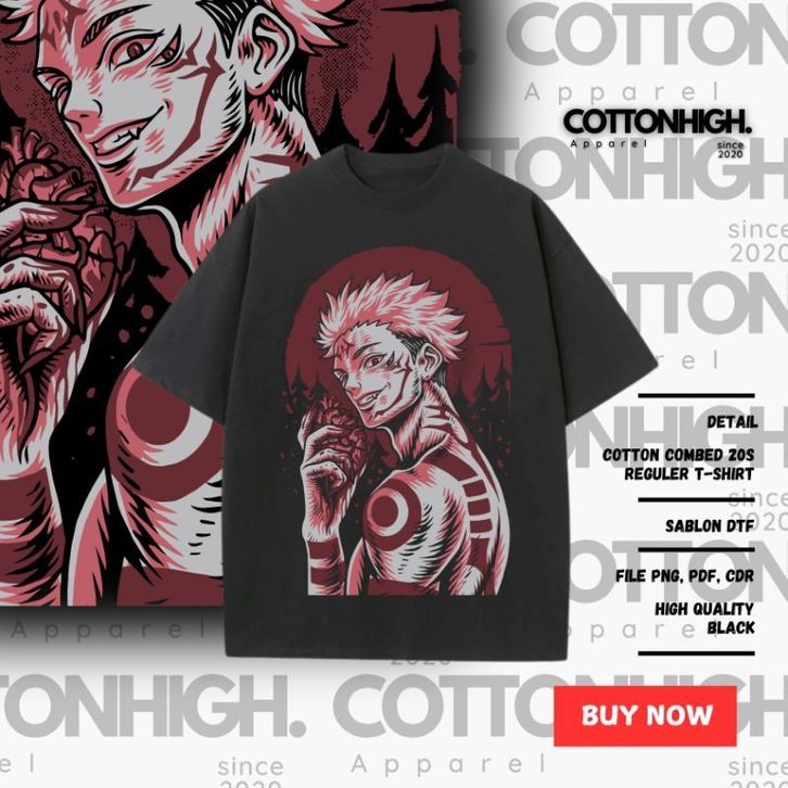 Kaos tshirt anime JUJUTSU KAISEN cotton combed 20s pria wanita