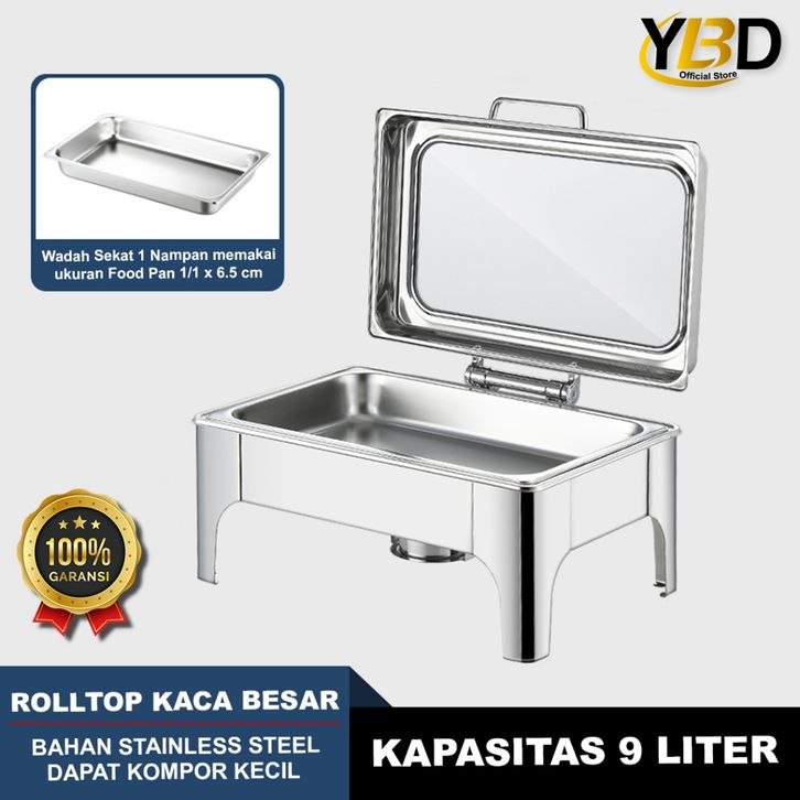 Chaving Dish Besar kaca GOLD kapasitas 9L / Rolltop Set prasmanan Lauk Pauk / Tempat makanan wedding