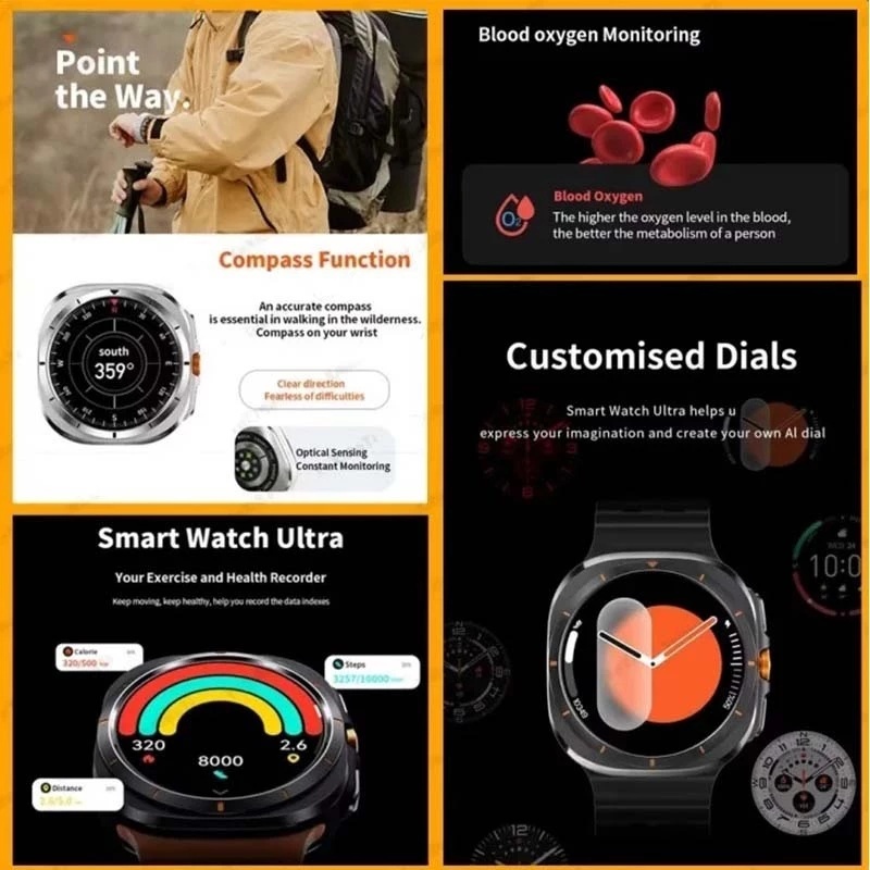 [ORI]SAMSUNG Galaxy watch Ultra (47mm) Baru SmartWatch pria wanita Bluetooth Waterproof Watch 6 Watch 7 Fitness Trac