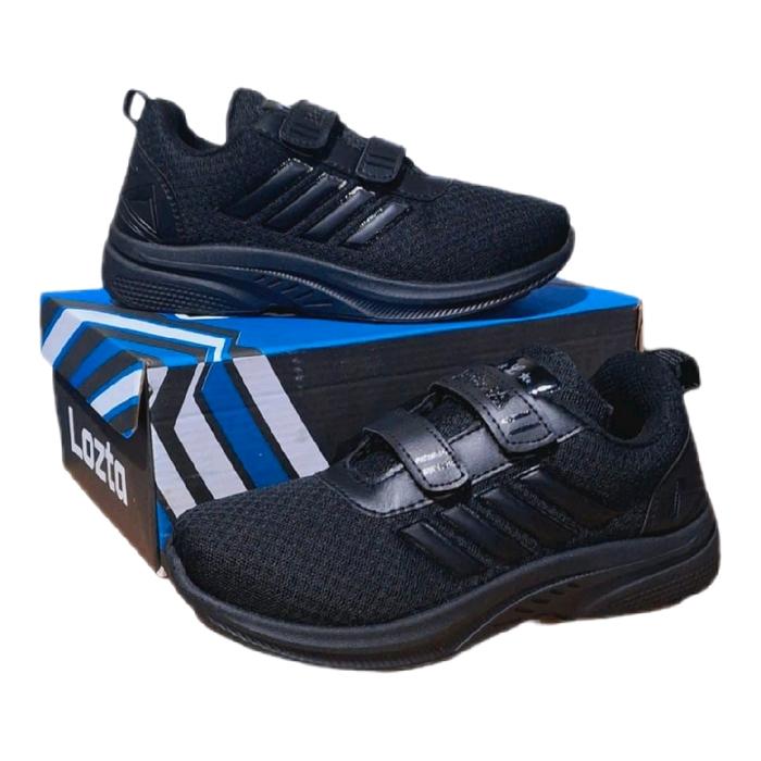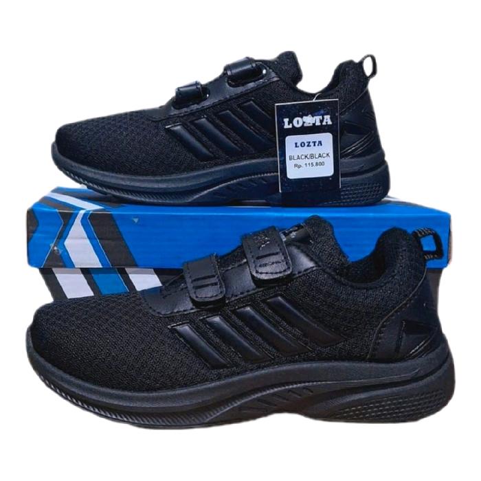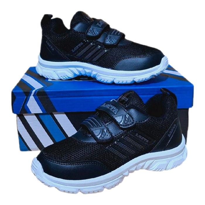 SEPATU ANAK SEKOLAH VELCRO STRAP 2 LOZTA HIGH QUALITY SNEAKERS FASHION RUNNING SPORT CANVAS HAK RENDAH (1-3 CM) - HITAM CENTANG, 30