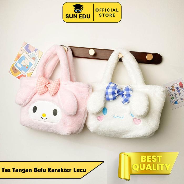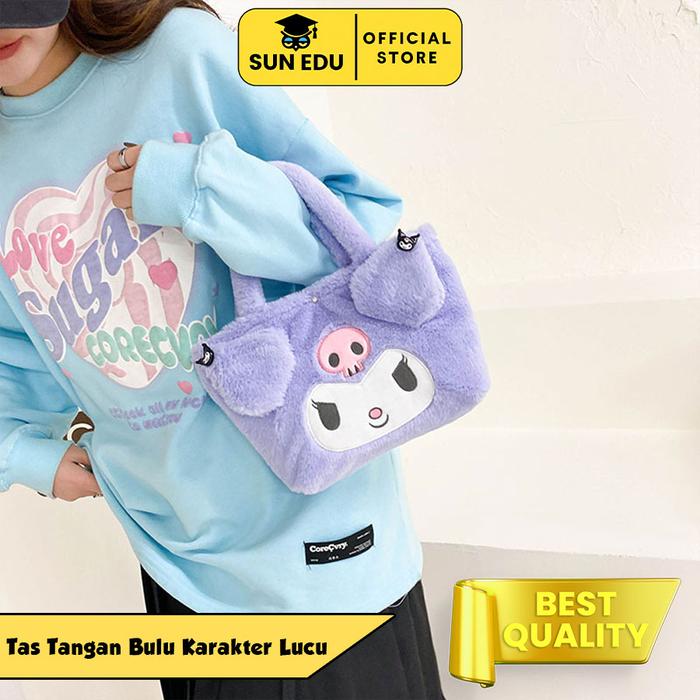 TAS BULU LUCU KARAKTER SANRIO/ SHOULDER TOTE BAG CUTE FLUFFY UNTUK ANAK FASHION TASK UROMI COKELAT A-PINKUNICORN TAS & KOPER - KUROMI