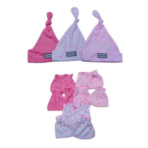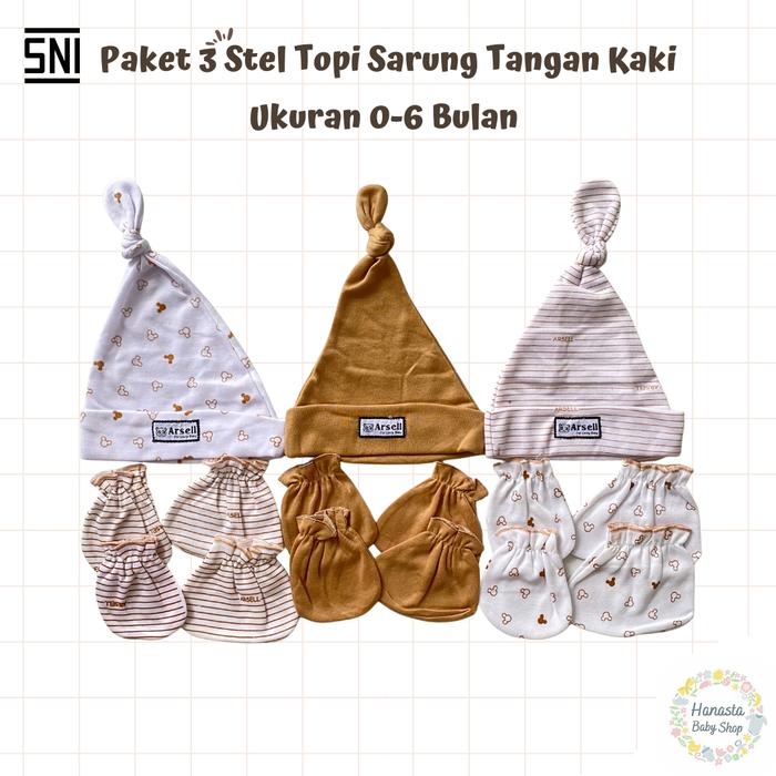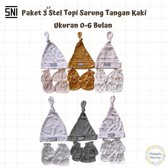 PAKET 3 STEL TOPI SARUNG TANGAN BAYI NEWBORN - SERI ABU