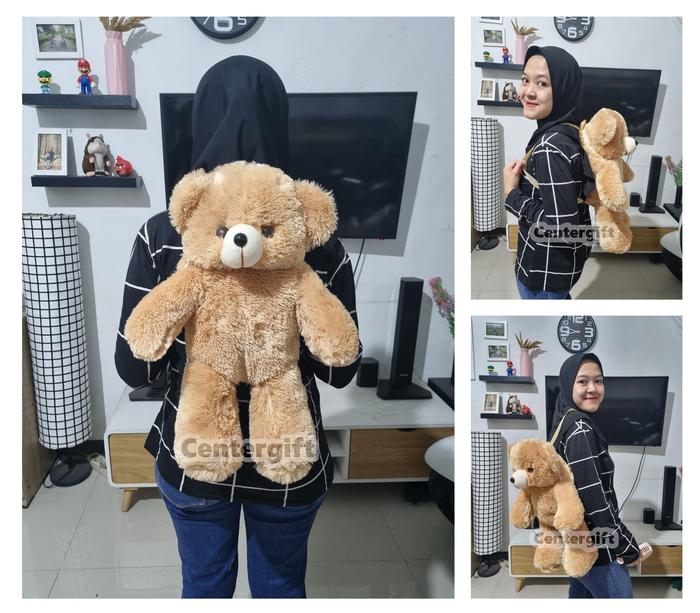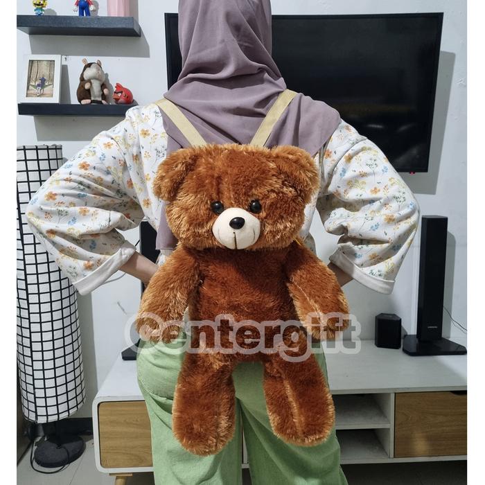TAS BONEKA TEDDY BEAR LUCU TAS RANSEL BERUANG ANAK - COKLAT MUDA