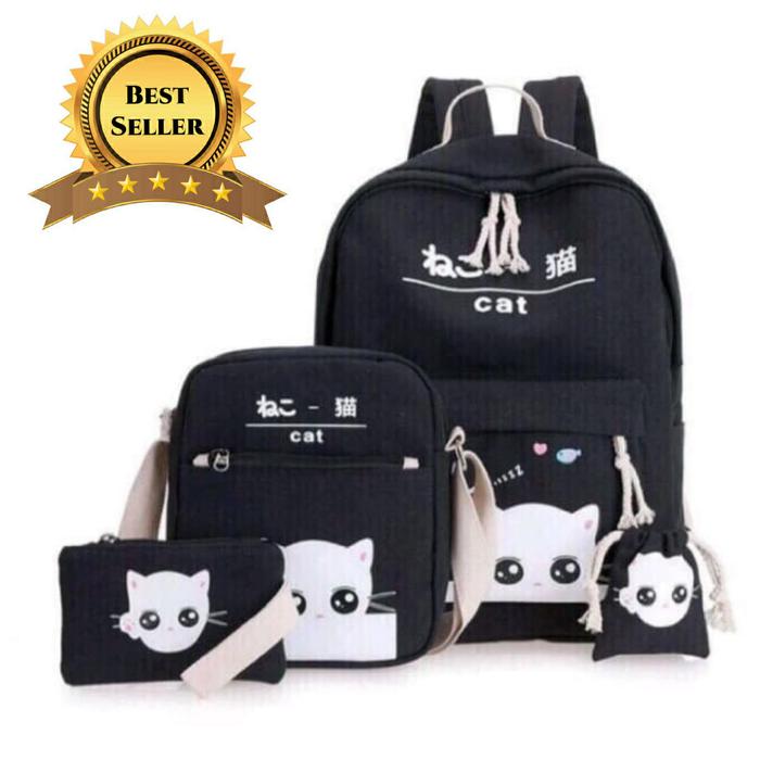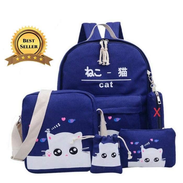 TAS SEKOLAH ANAK PEREMPUAN MODEL BABY CAT 4IN1 - BIRU NAVY