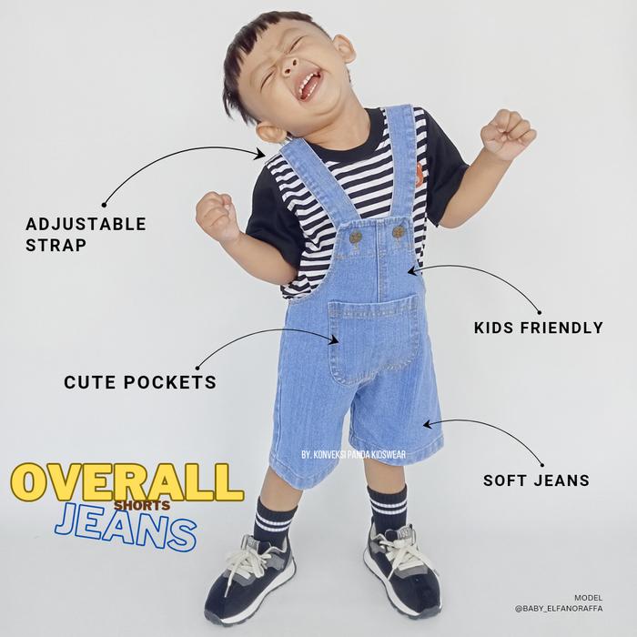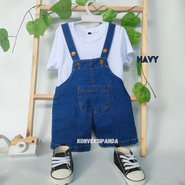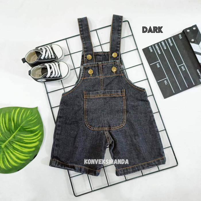 OVERALL CELANA PENDEK JEANS ANAK UNISEX 1-6 TAHUN DENIM - SIZE S, NAVY