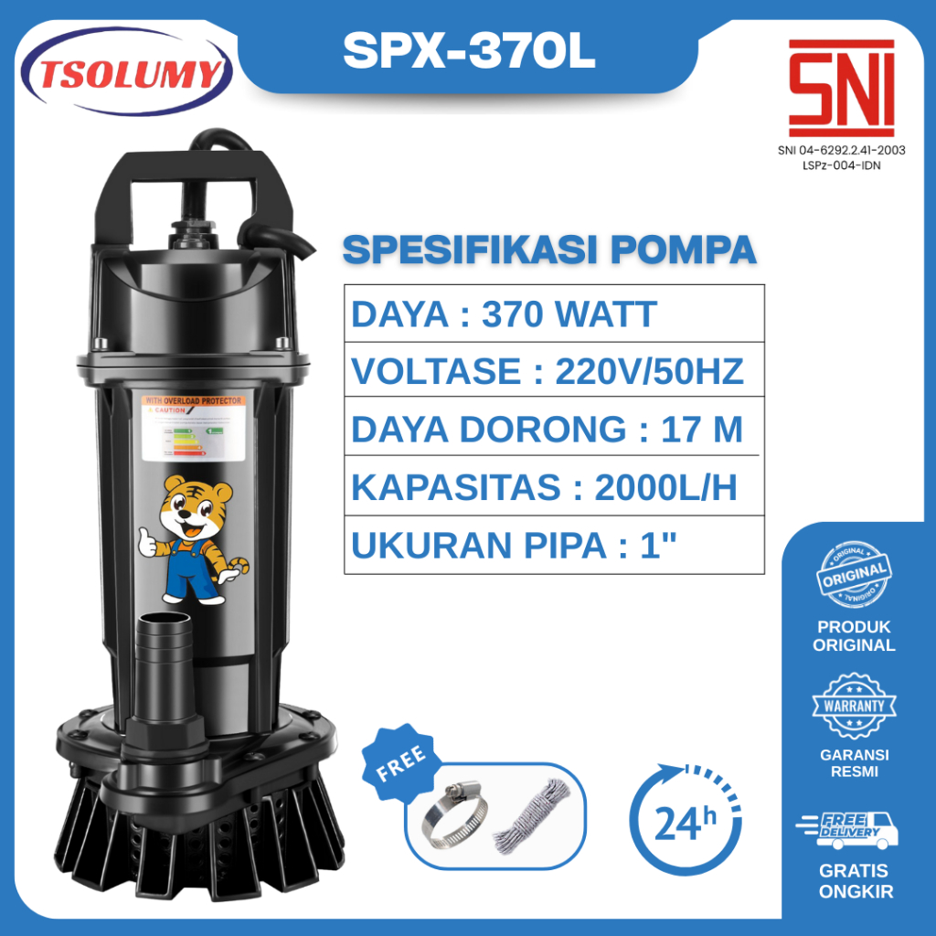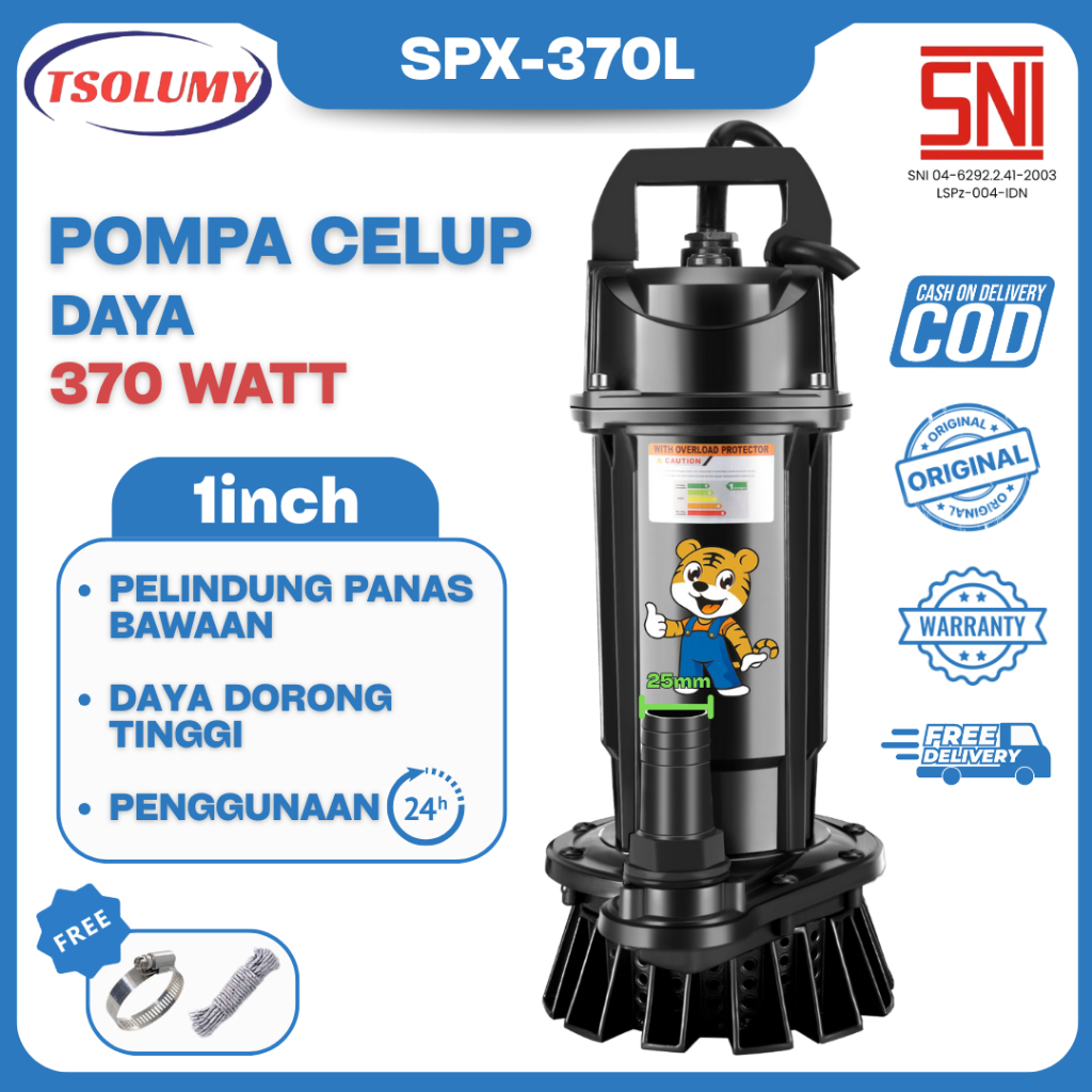Tsolumy Pompa Celup Air Kotor SPX-370L Daya 370 Watt Outlet 1 inch Mesin Pompa Tenaga Kencang Irit
