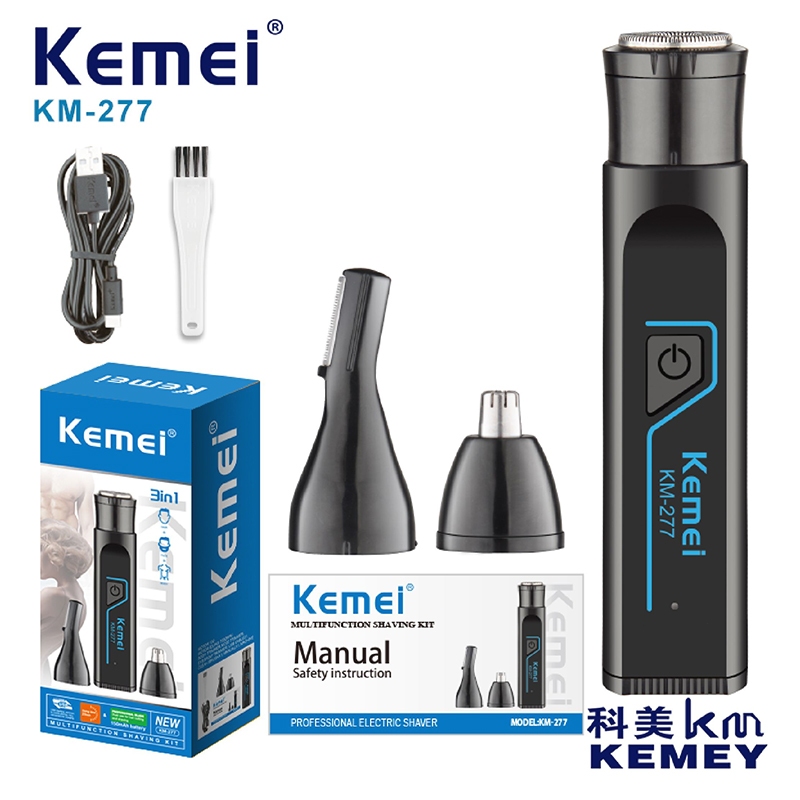 Kemei KM-277 Alat Cukur Listrik 3 In 1 Pemangkas Rambut & Jenggot & Bulu Hidung Mini Portabel USB