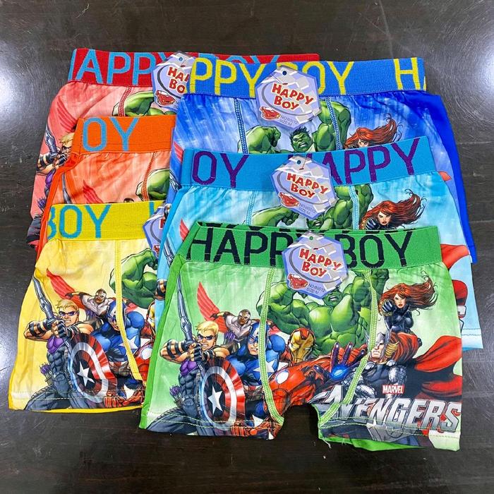 (6PCS)BOXER ANAK LAKI LAKI KARAKTER HAPPY BOY/BOXER 3D KAOS SANGSANG KAPAS 8-9 TAHUN DAPAT DICUCI DENGAN MESIN M - RANDOM, M
