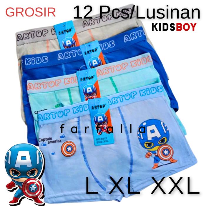 12 PCS BOXER ARTOP KIDS CELANA DALAM ANAK COWOK - L, 3PCS