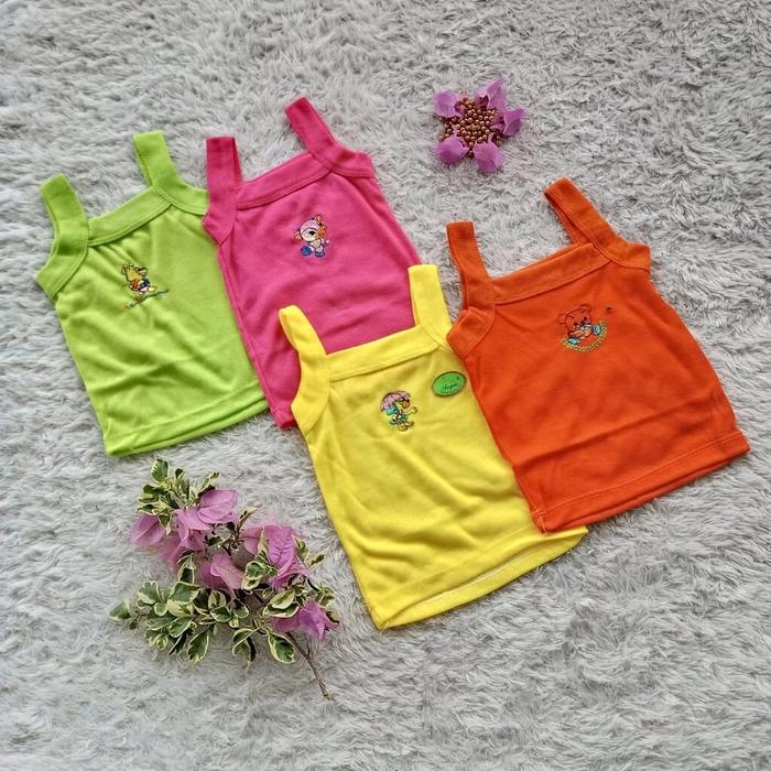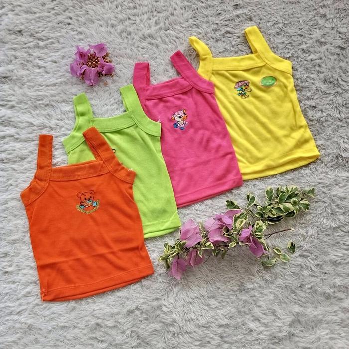 12PCS KAOS SINGLET ANAK BALITA PEREMPUAN GAIXIN BORDIR WARNA STABILO KATUN - 6PCS WARNA CAMPUR, S