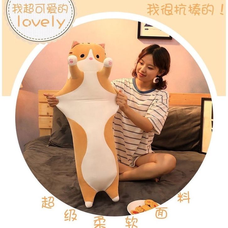 Bantal Guling Kucing Boneka Tinggi 60cm Bahan Yelvo Berlabel SNI