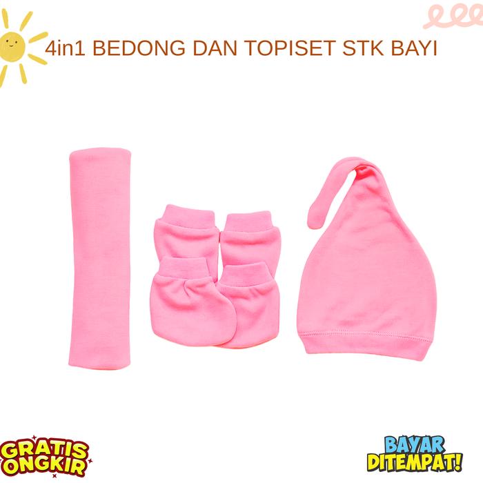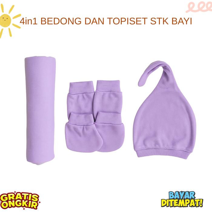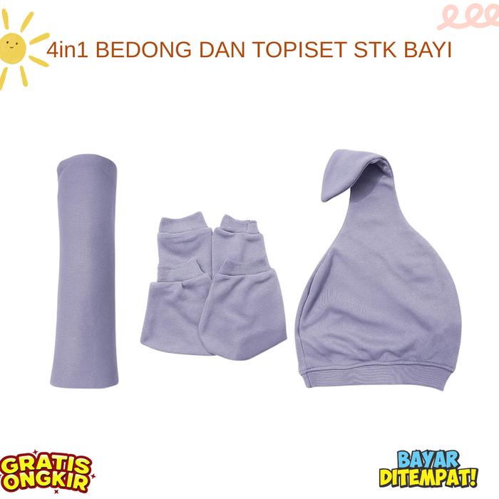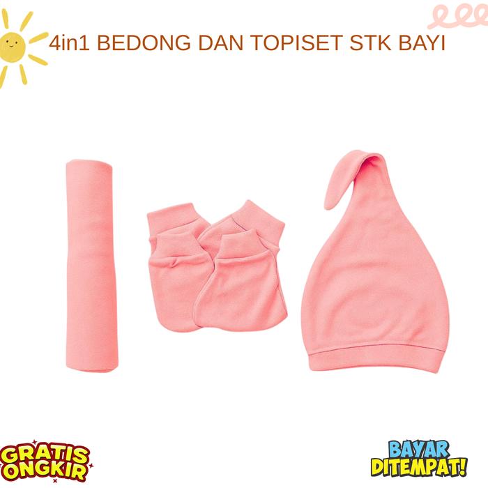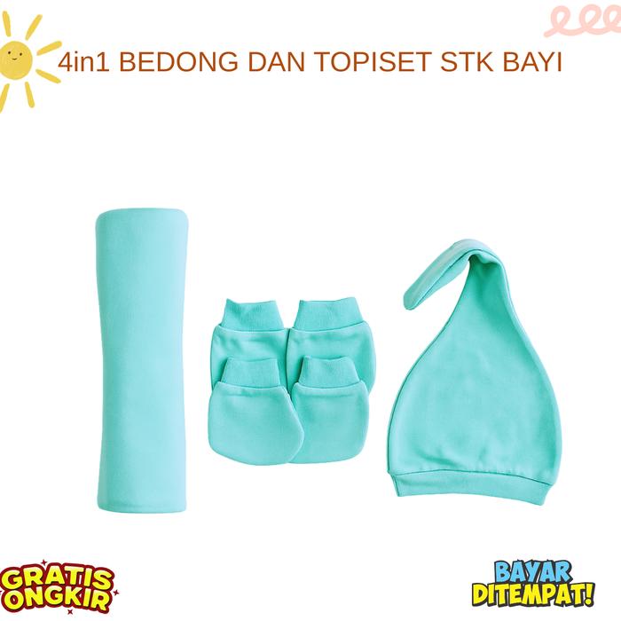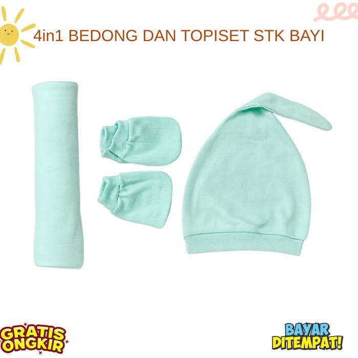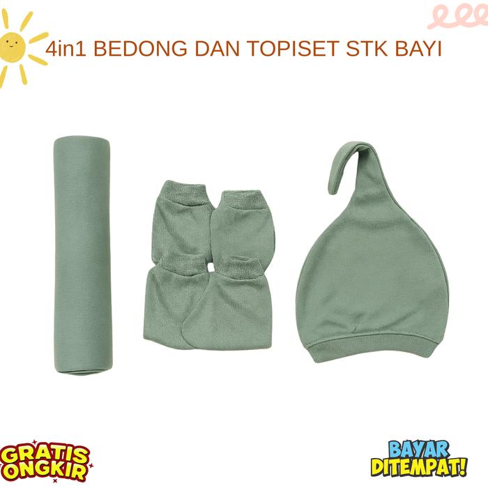 4IN1 PERLENGKAPAN BAYI BARU LAHIR BEDONG BAYI TOPI KUPLUK BAYI SARUNG TANGAN KAKI BAYI - MUSTARD