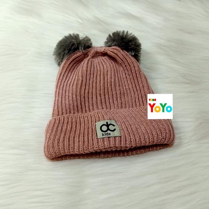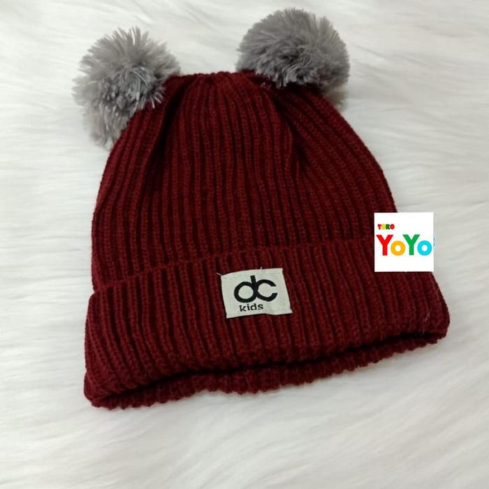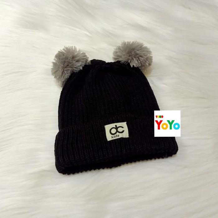 TOPI RAJUT KUPLUK POMPOM BULU ANAK BAYI - HITAM