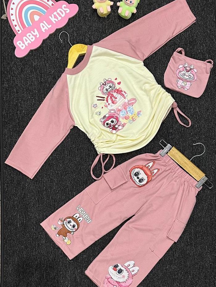SETELAN ANAK PEREMPUAN VIRAL BAJU MODEL SERUT FREE TAS 2 - 10 TAHUN CELANA CARGO PARSEL - FREE TAS DUSTY, SIZE M 2-3 TAHUN