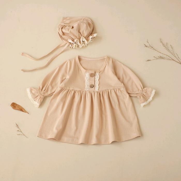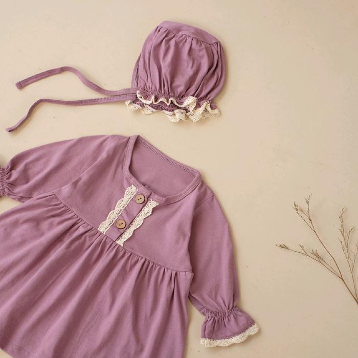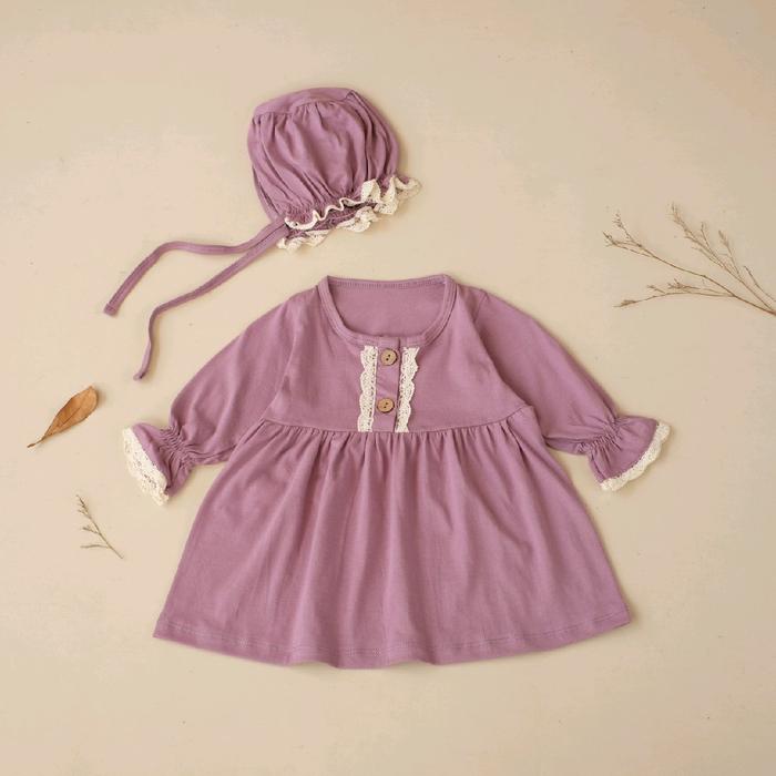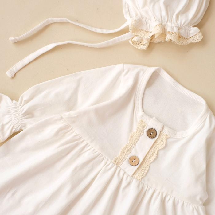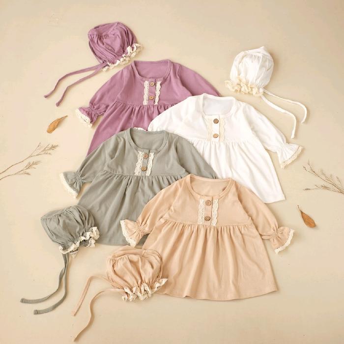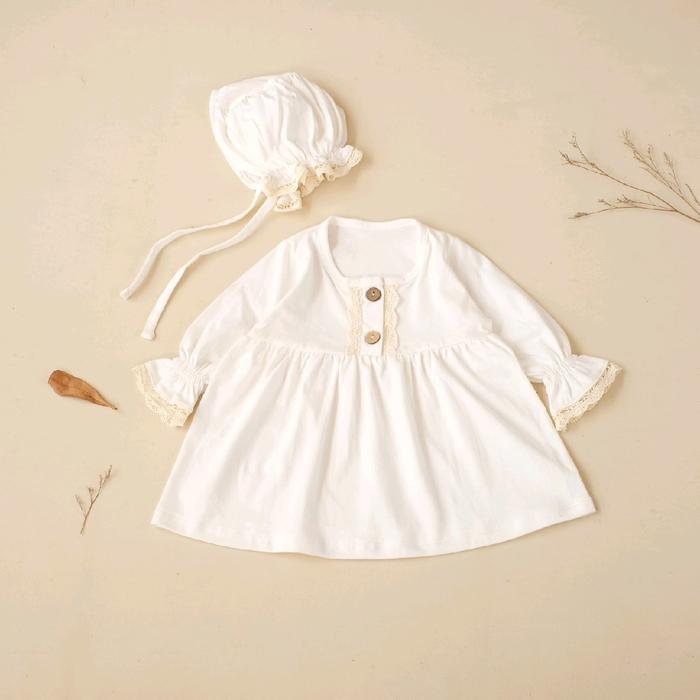 DRESS BAYI RALINE BAHAN KATUN LENGAN PANJANG BONUS TOPI BONNET 0-12 BULAN - RALINE B'WHITE, S