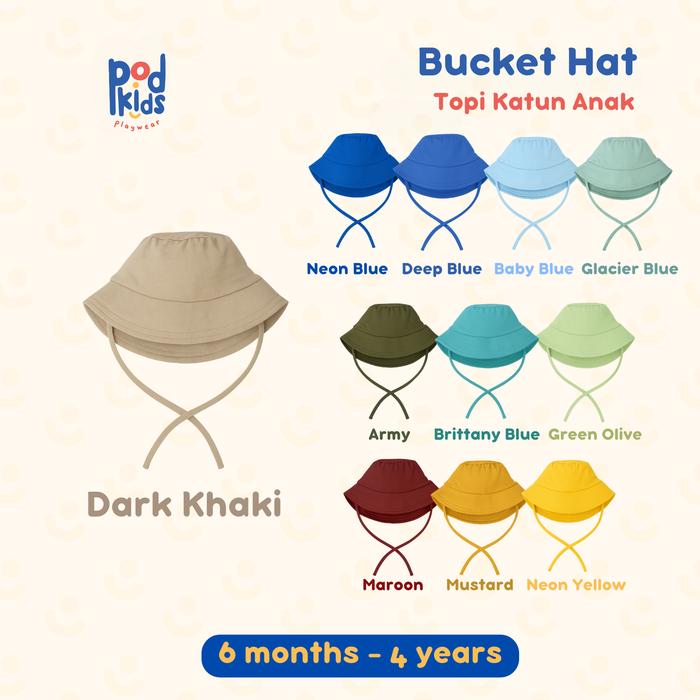 PODKIDS TOPI ANAK - BUCKET HAT 6 BULAN - 4 TAHUN - DARK KHAKI, 6-12 MONTHS