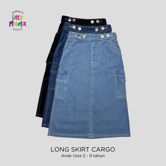 MIXMIX LONG SKIRT CARGO - HIGHWAIST ROK SPAN PANJANG CARGO JEANS FASHION KANCING ANAK PEREMPUAN 2 - 9 TAHUN - LSC - BLACK, M
