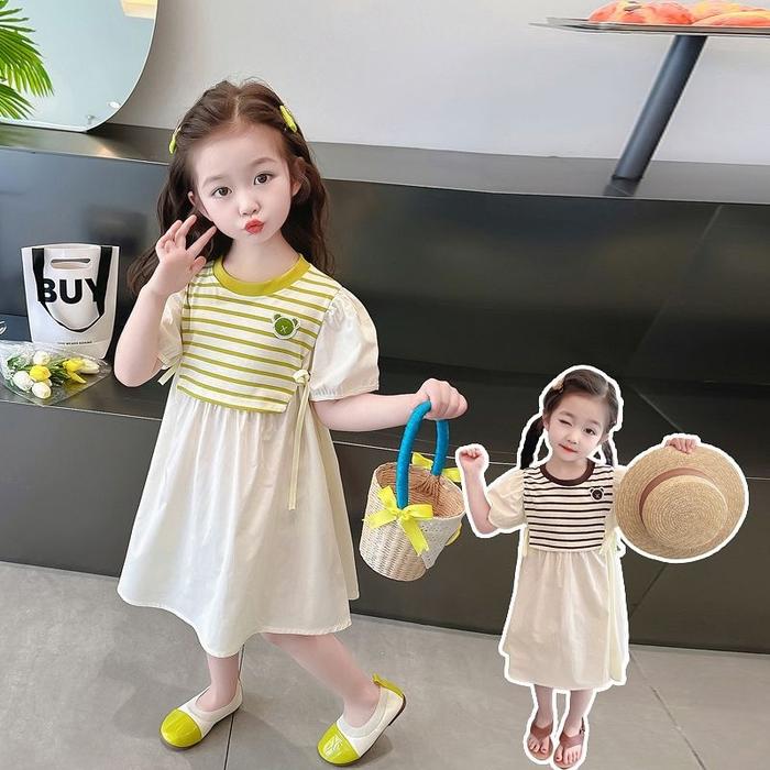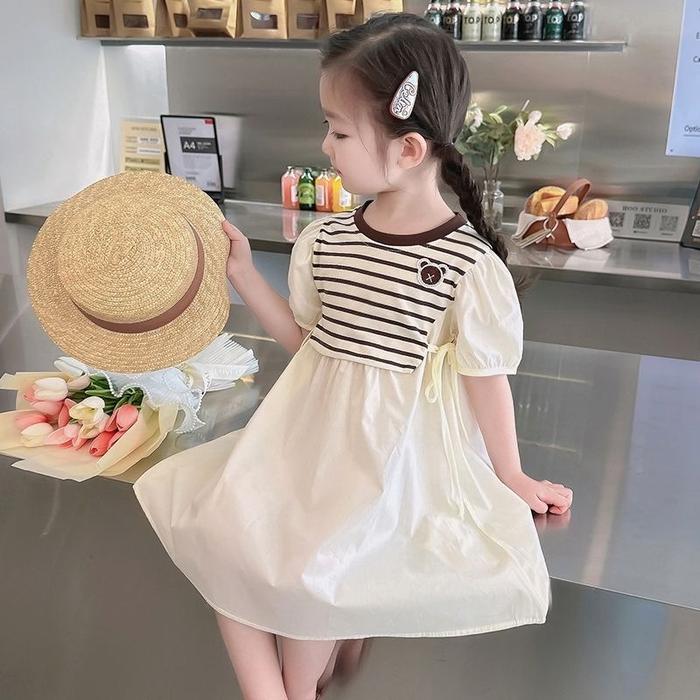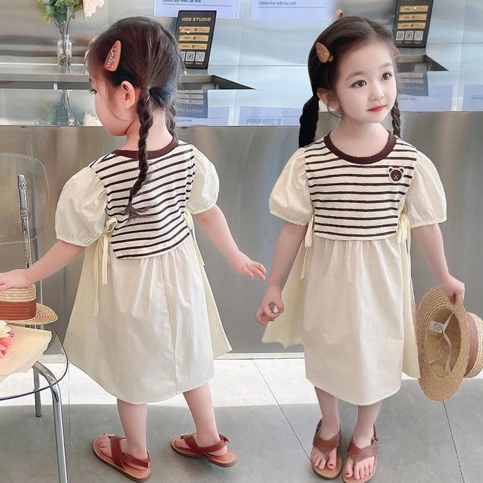 [PRINCESS KESLI] 1-9 TAHUN DRESS SALUR SULAM ANAK PEREMPUAN ROK FASHION TERBARU GAUN KATUN NYAMAN BLOUSE KIDS SANTAI BAYI CEWE LOO - COFFEE, 90 (1-2 TAHUN)