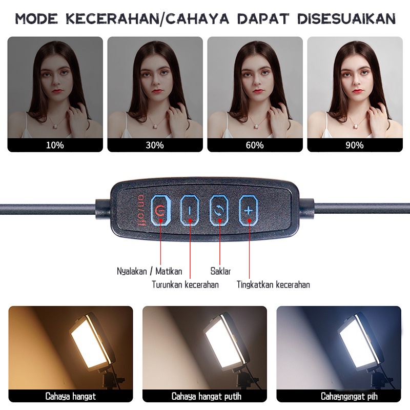 8 Inci Lampu Foto Lampu LED Video Light Fill Light Tripod Ring Light Lampu Fotografi Live Vlogging USB Portabel Dimmable
