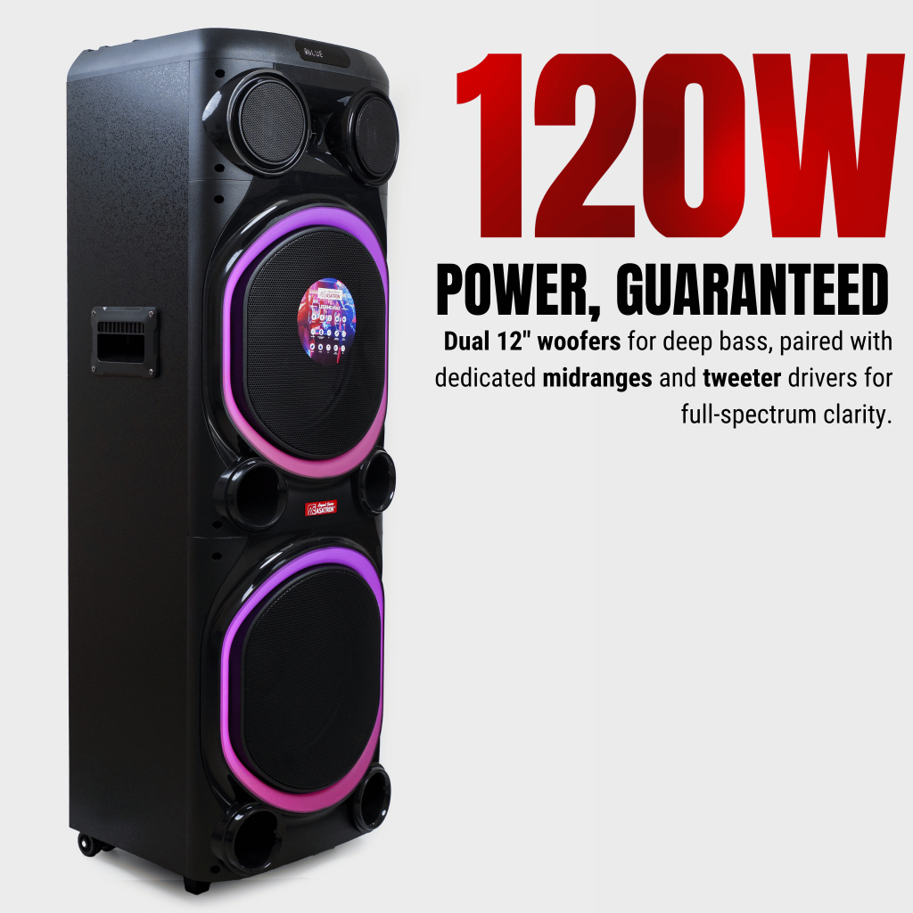 Asatron Legend L-1201 MAX Bluetooth Tower Party Speaker, Deep Bass, 2 UHF Wireless Mics