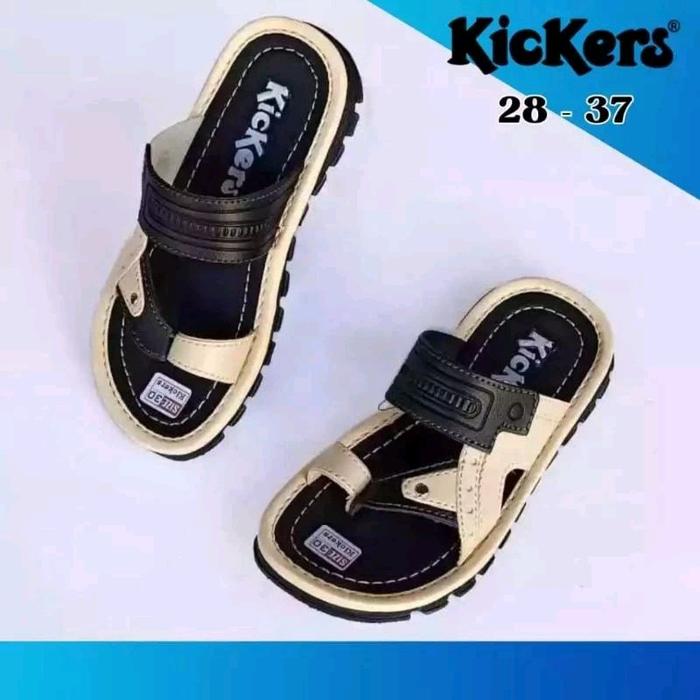 KICKERS SANDAL ANAK LAKI-LAKI USIA 3-13 TAHUN SANDAL JAPIT JEMPOL SANDAL ANAK COWOK SANDAL JAPIT JEMPOL COWOK FASHION KAKI SENDAL JEPIT - HITAM CREAM, 28