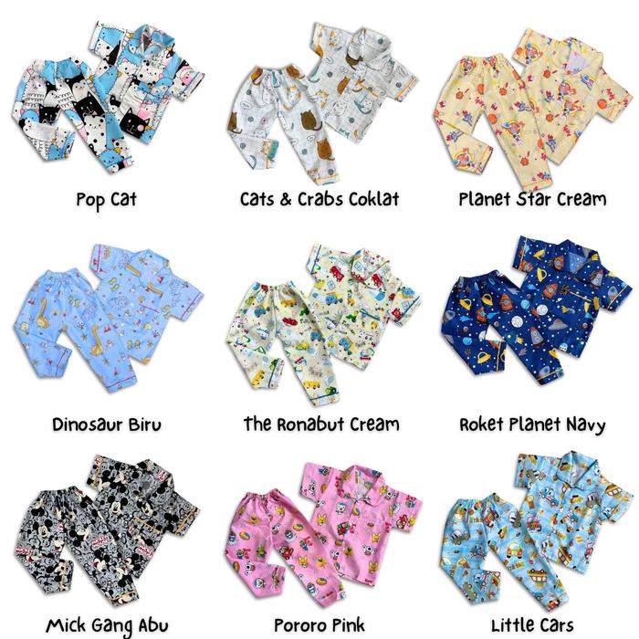PAKET 50 RIBU BELI 3 DAPAT 4 PIYAMA ANAK BAYI SAMPAI REMAJA (BERLAKU KELIPATAN) FASHION - CEWE 3 SET + 1 SET , SIZE S (2-10 BULAN)