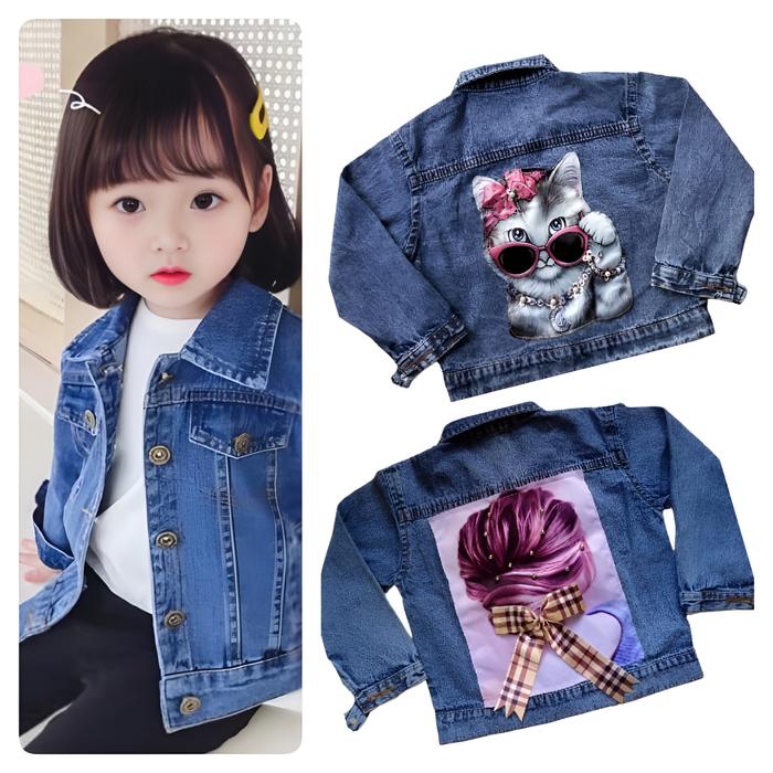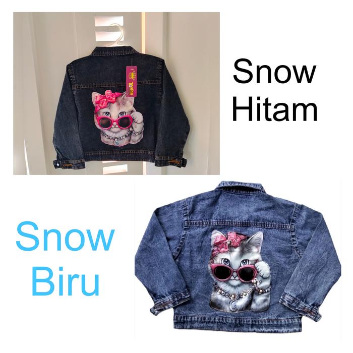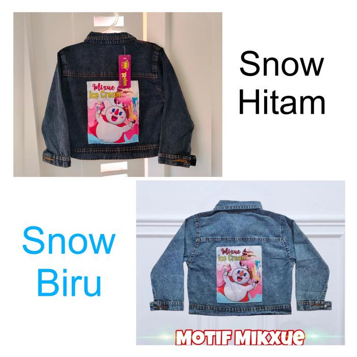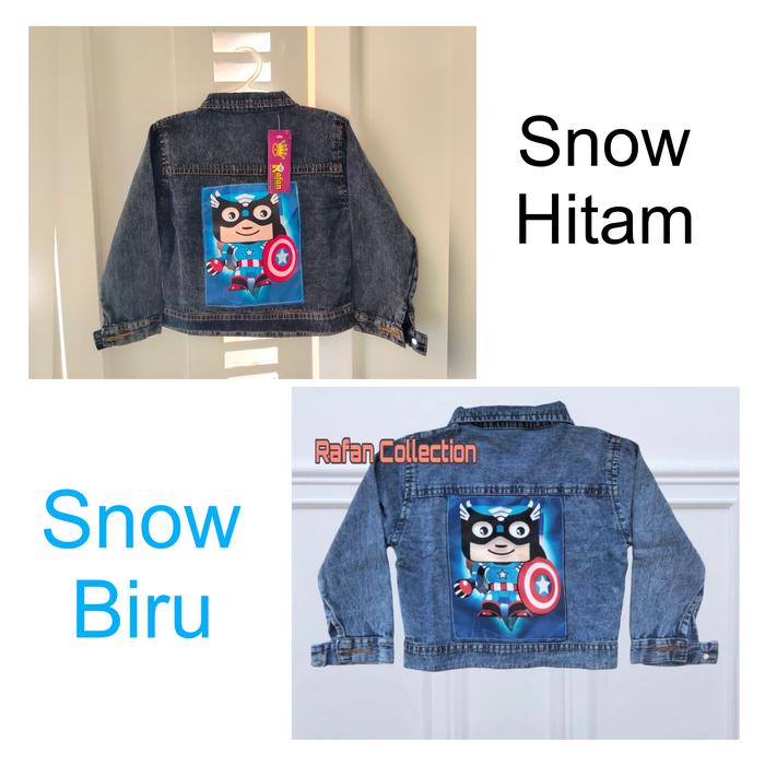 JAKET JEANS ANAK MOTIF 3D USIA 1 - 10 TAHUN LAKI-LAKI PEREMPUAN WARNA SNOW BIRU DAN SNOW HITAM - POLOS, S ( 1 TAHUN )