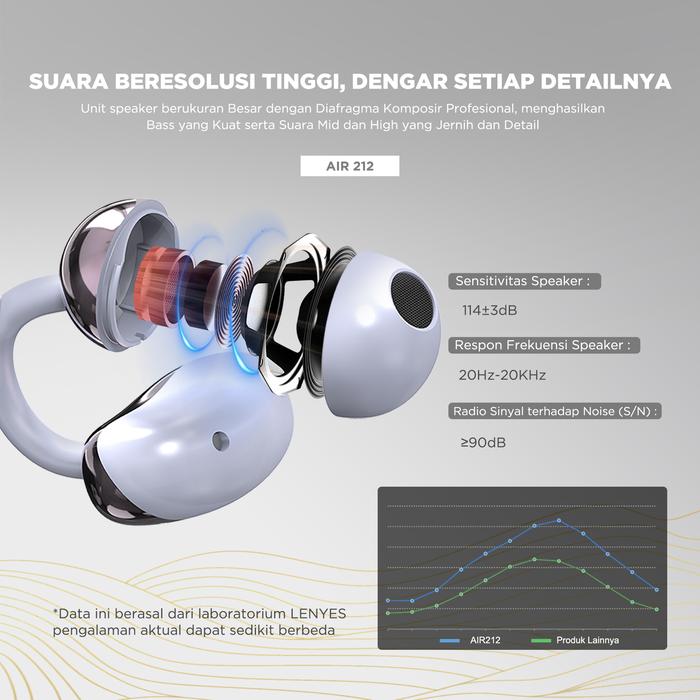 LENYES AIR 212 CLIP-ON OPEN EAR OWS WIRELESS EARPHONE BLUETOOTH 5.4 HEADSET AIR CONDUCTION EARBUDS TWS - g0ldd