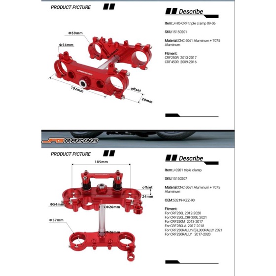 SEGITIGA SET MOTORCROSS TRIPLE CLAMP SPECIAL ENGINE PRO1RACING