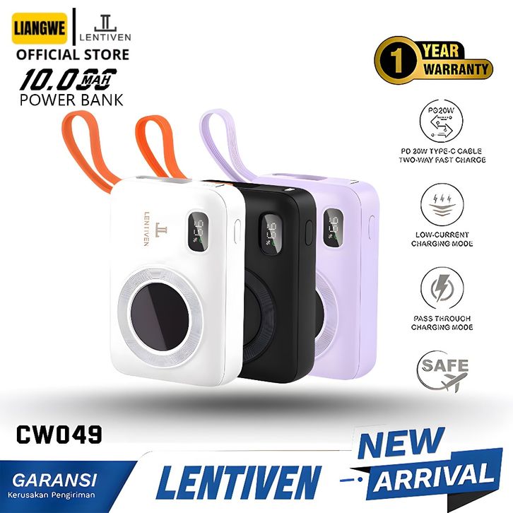 PROMO LIANGWE LENTIVEN Powerbank Mini 10000mAh Fast Charging 1 KABEL Type C For Iphone Android CW049 ehobmn