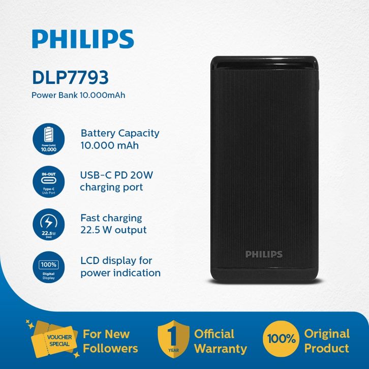 TERBARU Philips Powerbank DLP7793 Power Delivery 20W 10000mAh ebefk