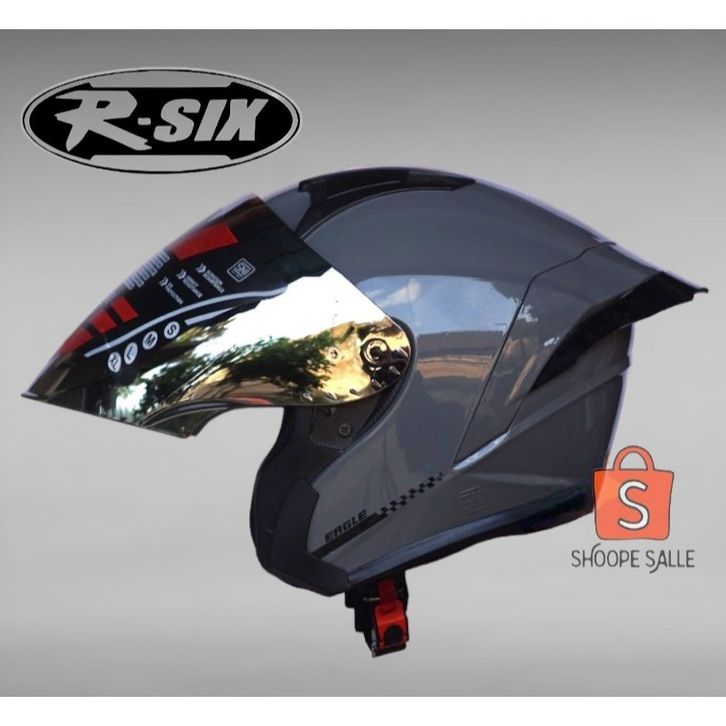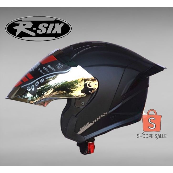 HELM R-SIX EAGLE SOLID-HELM HALF FACE SNI-HELM MOTOR (PAKET GANTENG-SPOILER) HELM MOTOR KEREN TERLARIS