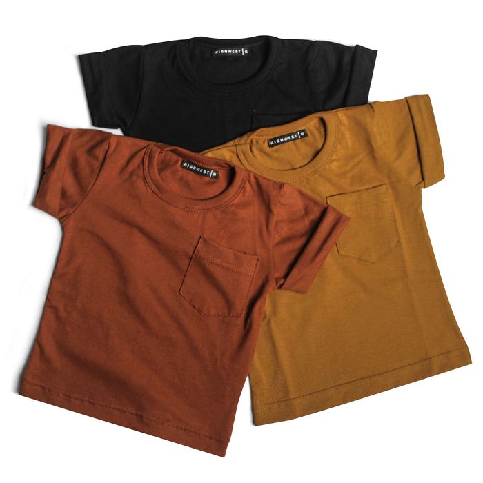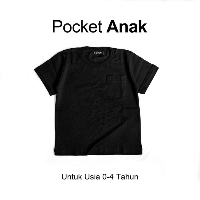 (19 WARNA) KAOS POLOS POCKET ANAK 0-3THN LENGAN PENDEK LIPAT COTTON COMBED 24S BAYI BLUE - HITAM, S (0TH)