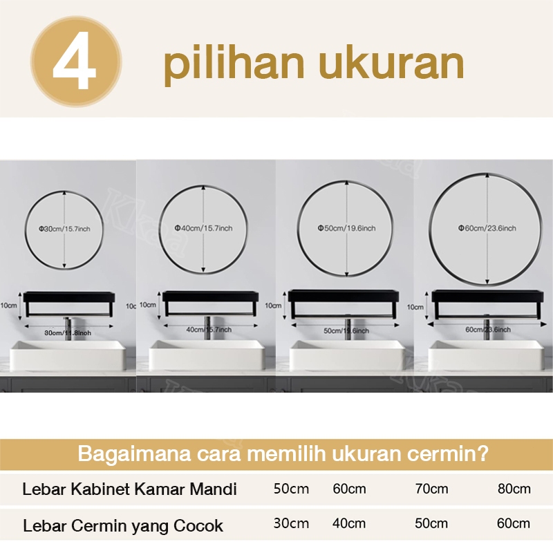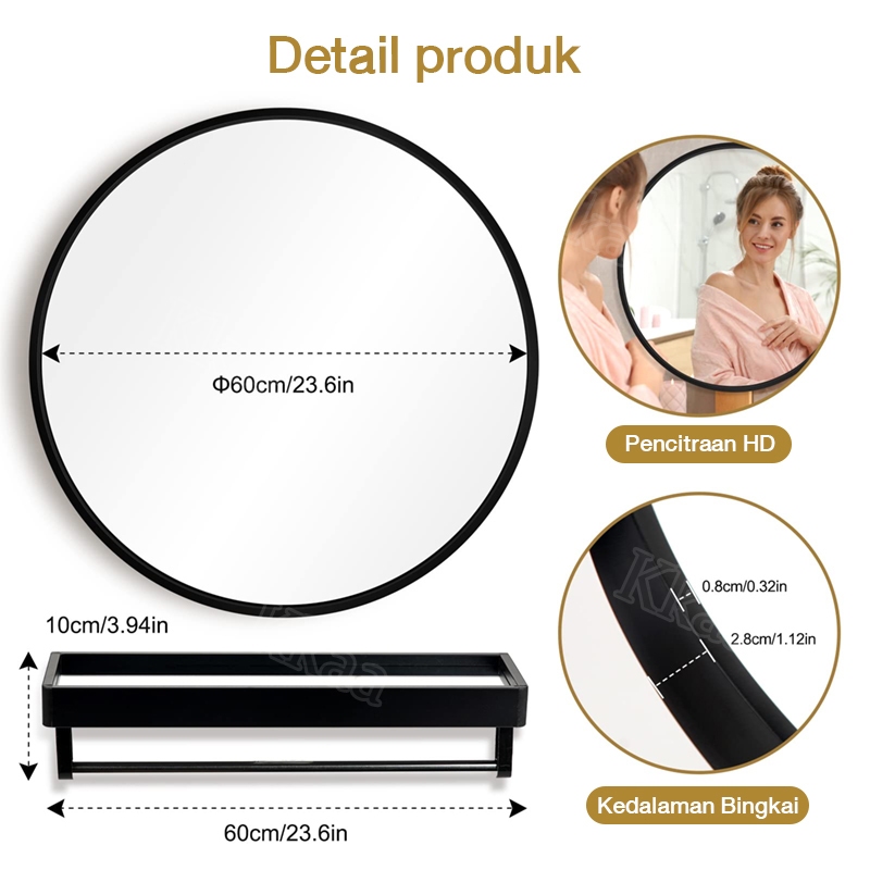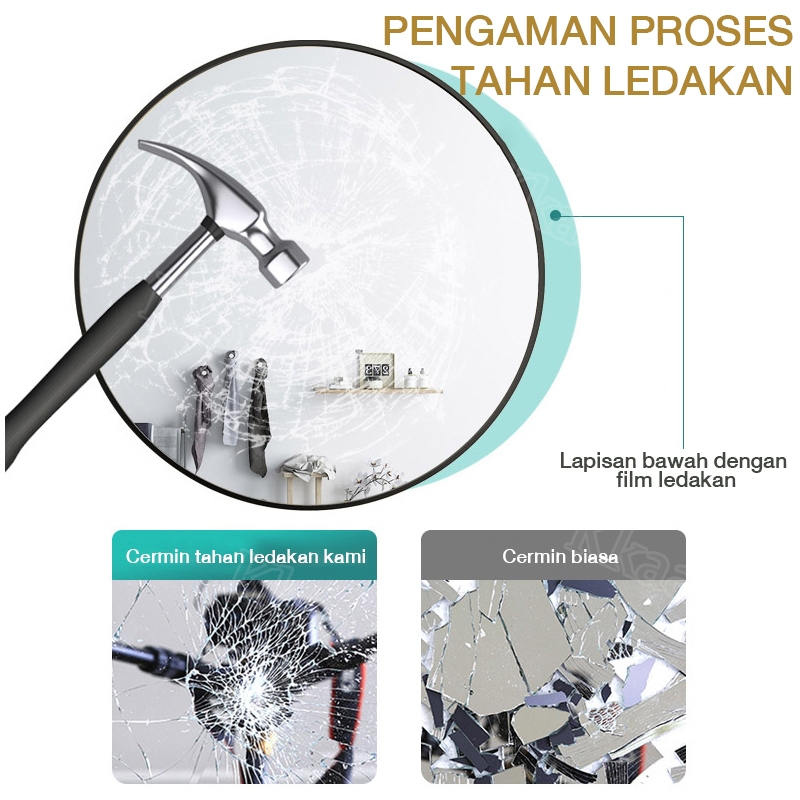 CERMIN DINDING TEMPEL KAMAR MANDI BUNDAR MINIMALIS MODERN AESTHETIC KEKINIAN ANTI KABUT