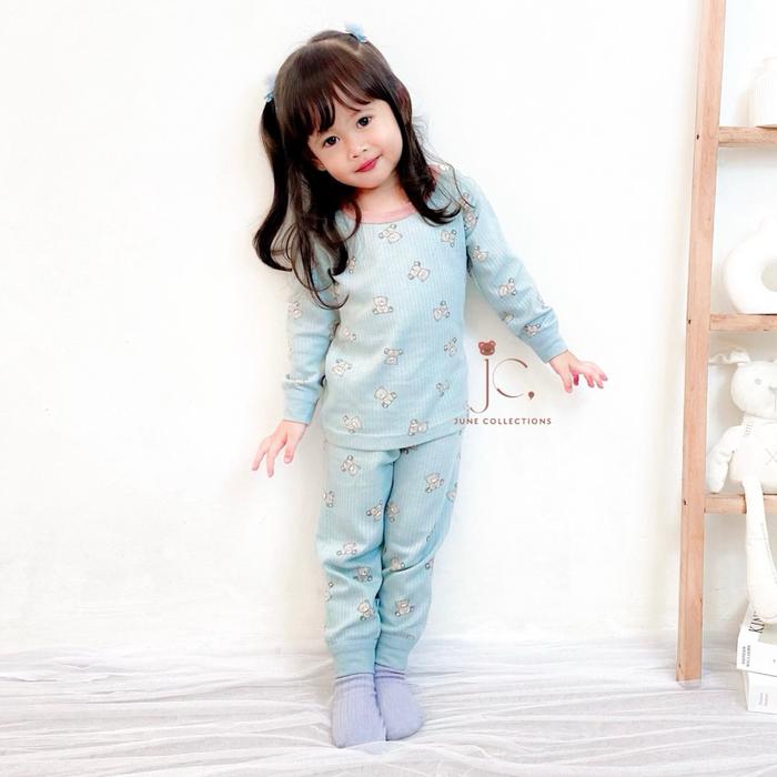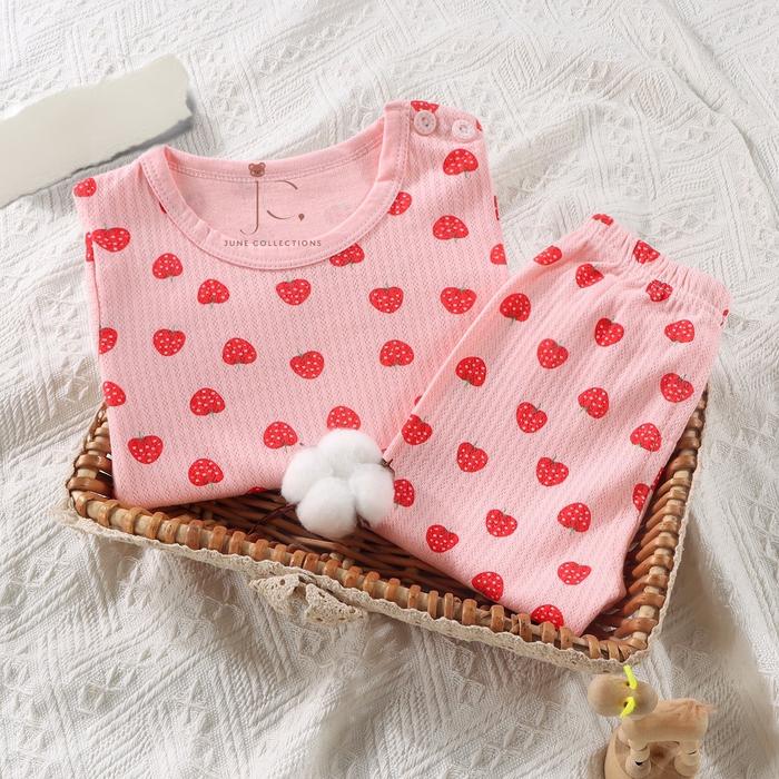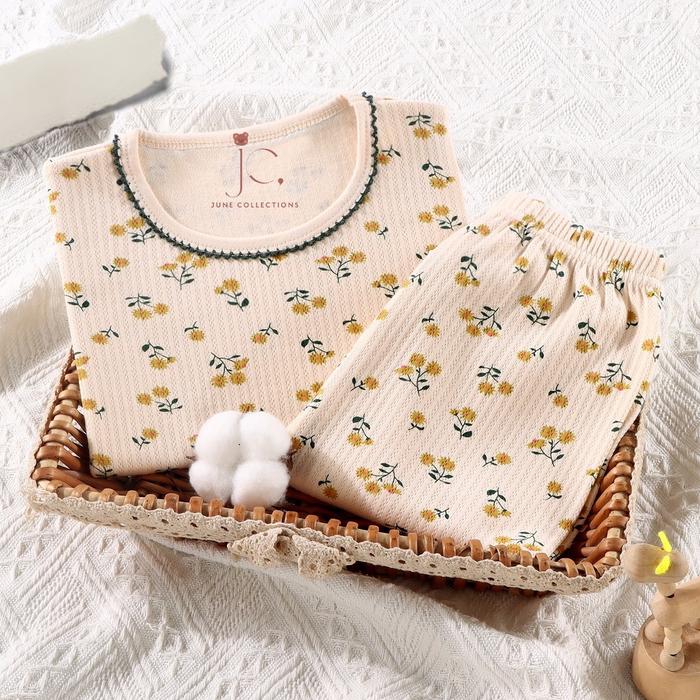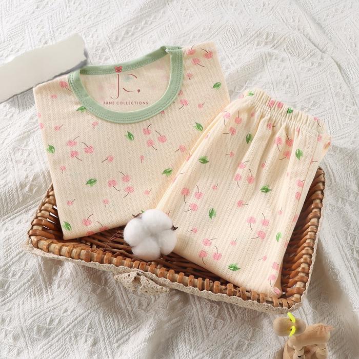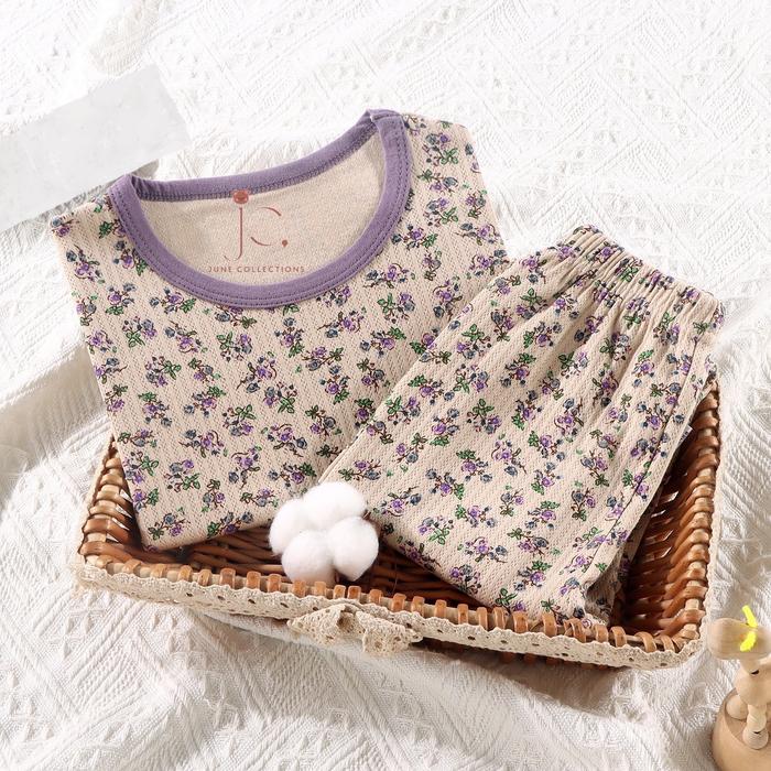 JUNECOLLECTIONS BAJU TIDUR ANAK SETELAN PIYAMA BAYI SET LENGAN PANJANG BAHAN LEMBUT PIYAMA ANAK MOTIF DAUN PITA CHERRY BUNGA #294-300 UNISEX - #294 DAUN UNGU, 55/80