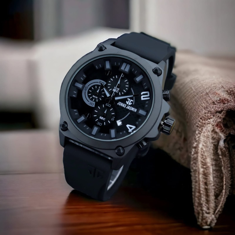 NEW Jam Tangan Pria Jonas Jasmin Original Chronograph Silicon Rubber Strap Water Resistant Bergaransi