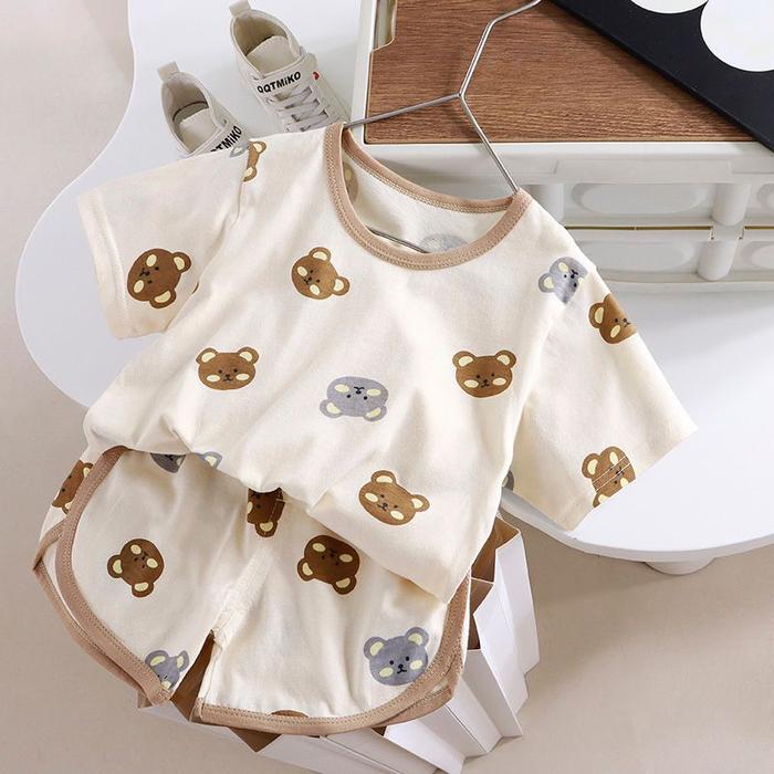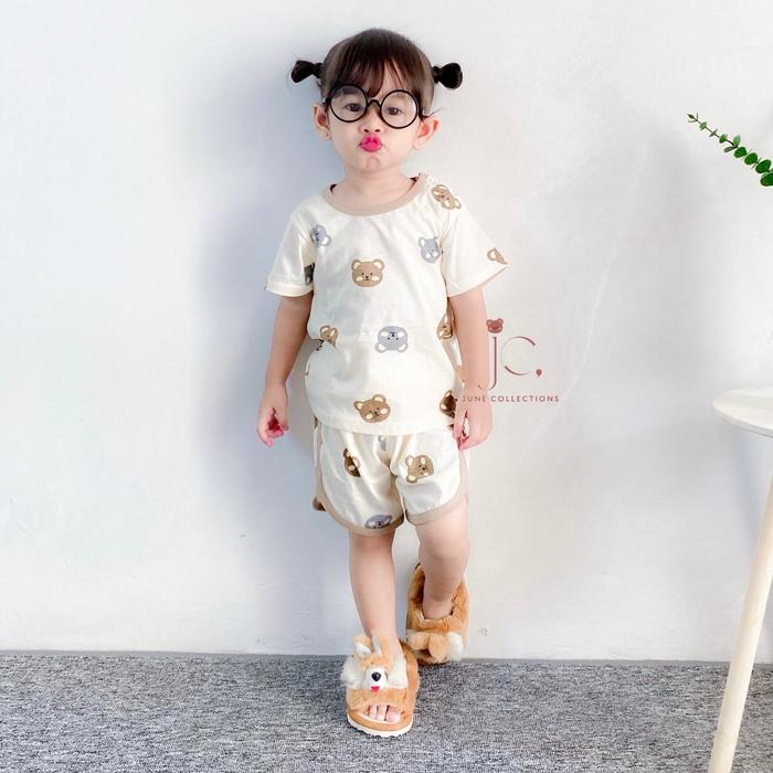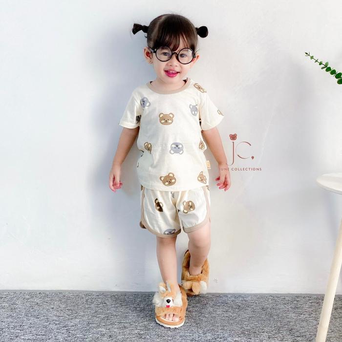 JUNECOLLECTIONS BAJU JUMPER PENDEK ANAK CELANA ANAK SETELAN LENGAN PENDEK BAJU SANTAI ANAK BAJU SEHARI-HARI BAHAN KATUN #191 FASHION - #191 KEPALA BERUANG, 55/80