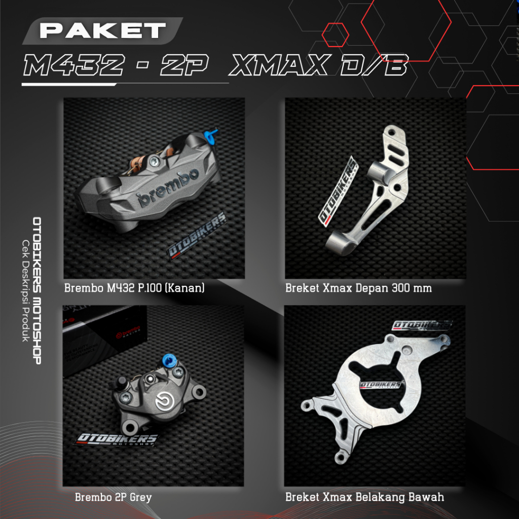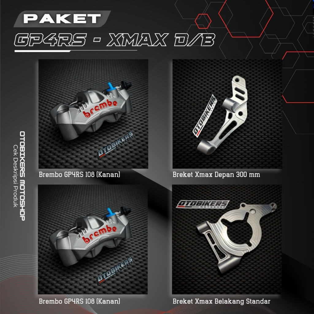 (PAKET) Kaliper 4p Brembo GP4RS M432 M4 32 Radial Set Breket XMAX 250 Ukuran 300 mm Depan - Belakang