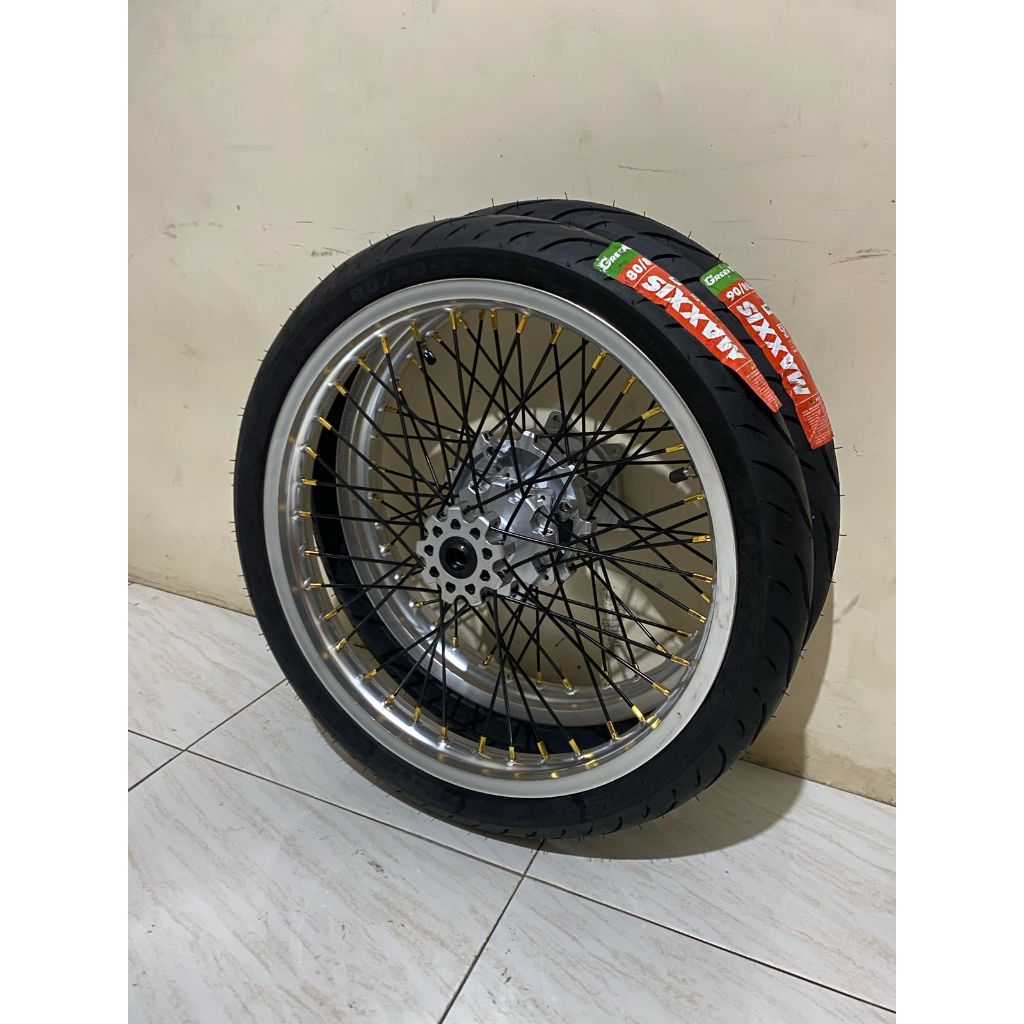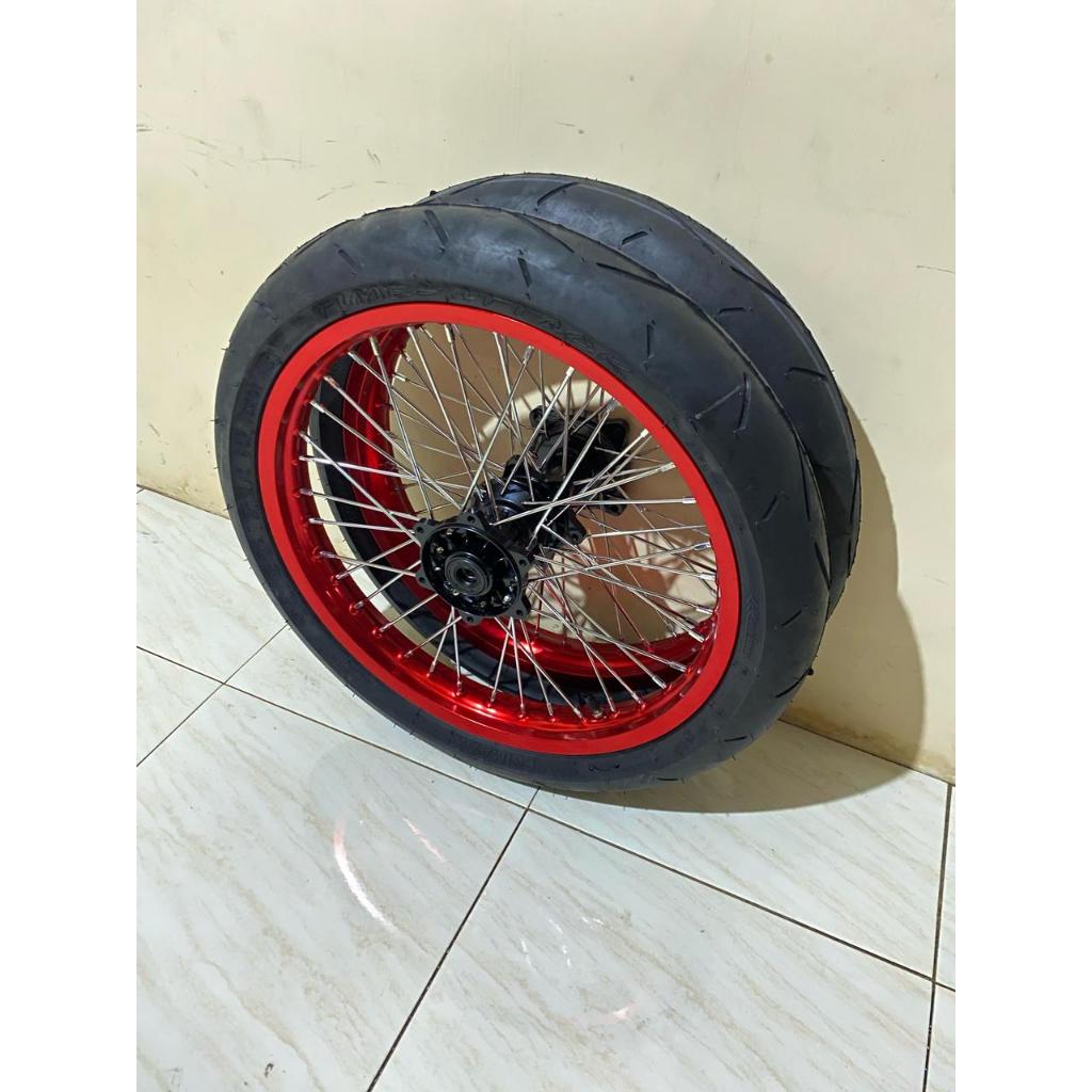 PAKET VELG WHEELSET SUPERMOTO CRF KLX SEMI CACING HEREX ROSSI SCARLET BAN MAXXIS PRIMAX
