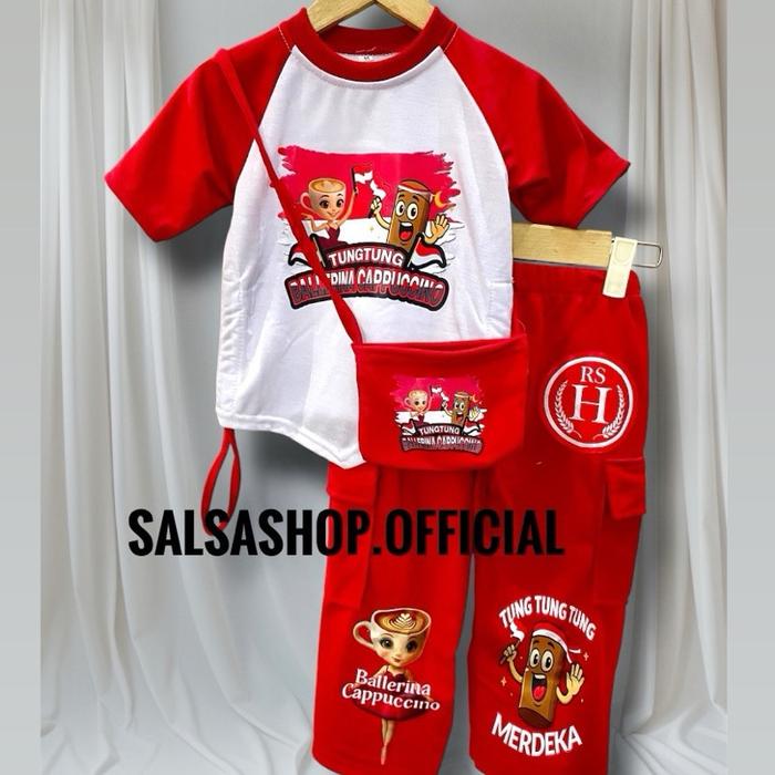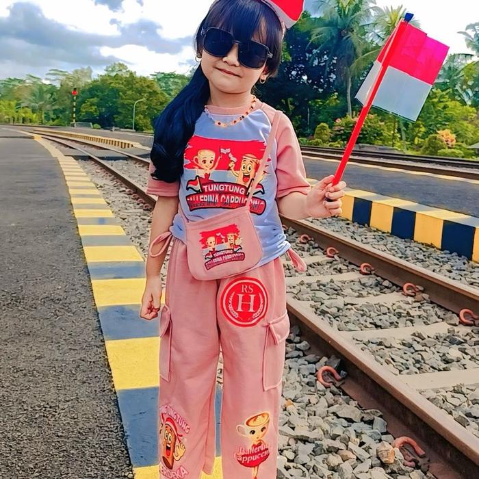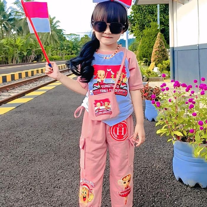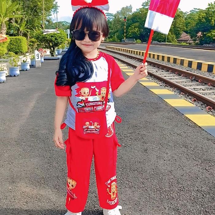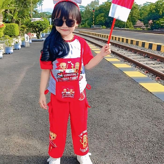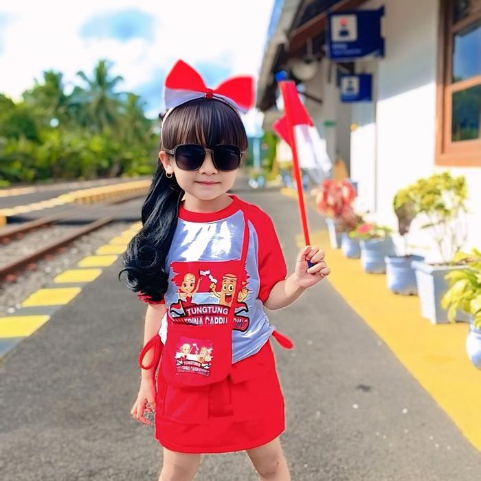 SETELAN BAJU ANAK PEREMPUAN FREE TAS KEMERDEKAAN USIA 1-10TAHUN - MERAHPUTIH, M (1-2TAHUN)