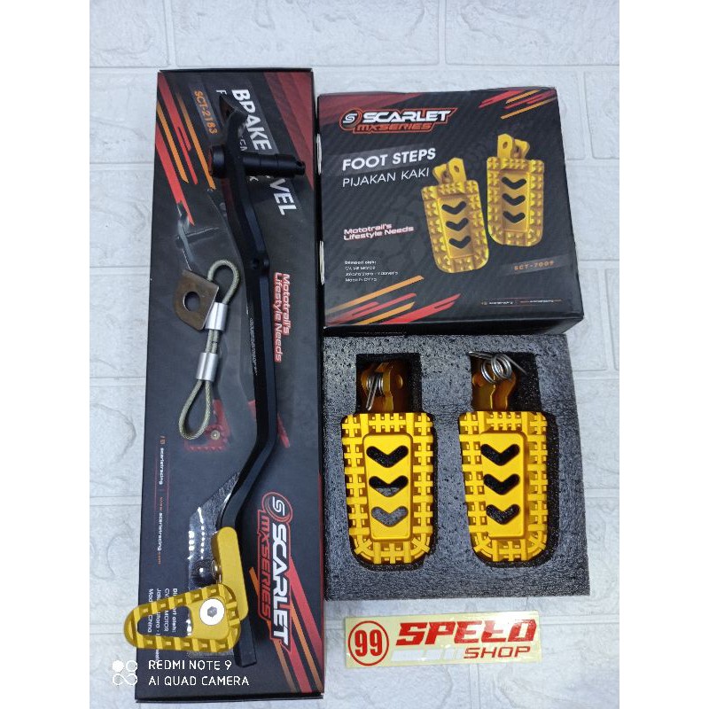 satu paket footsteps pinjakan kaki plus brake level pedal rem scarlet mxseries cross klx 150