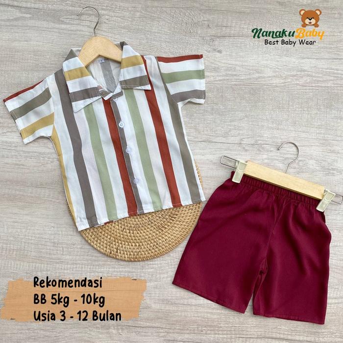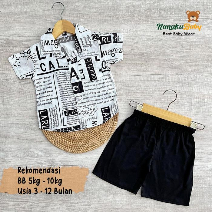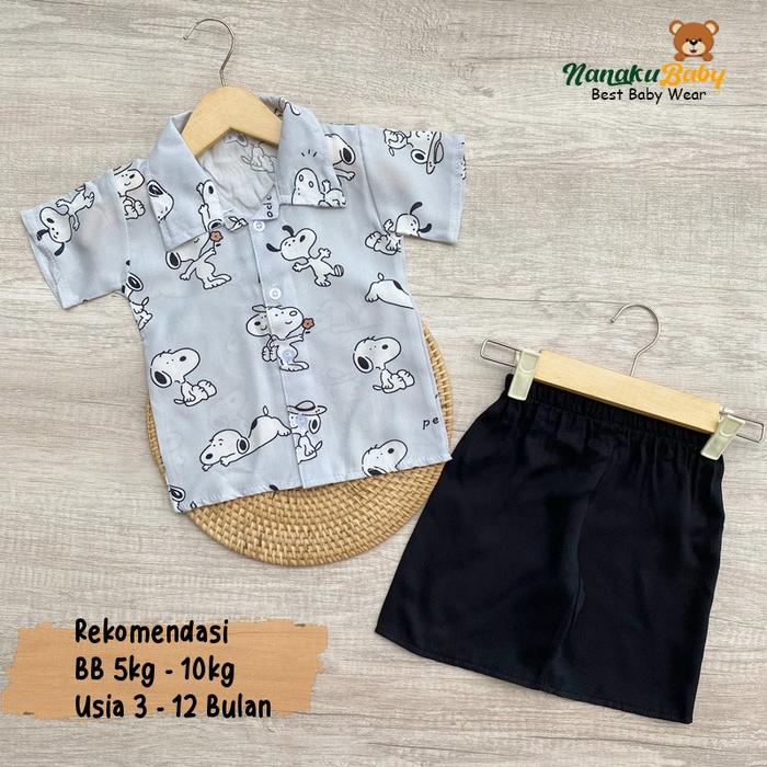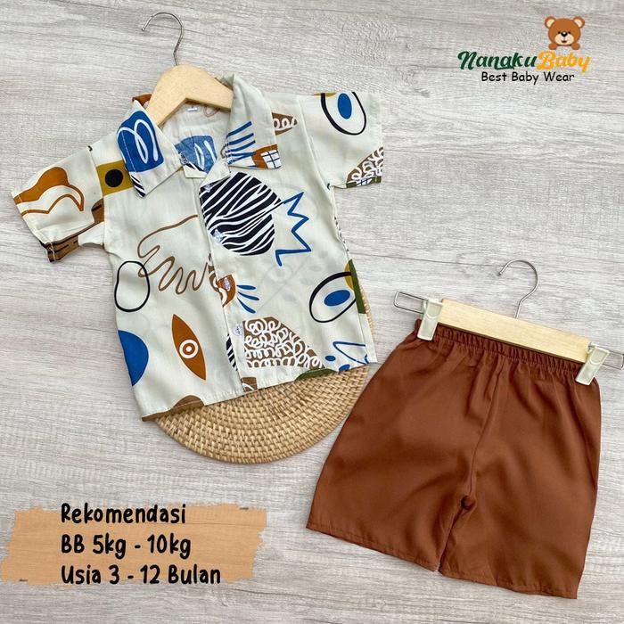 NANAKU BABY - SETELAN BAJU BAYI KEMEJA BAYI ONE SET RAYON MOTIF ANIMAL USIA 3-12 BULAN - KUCING COKLAT