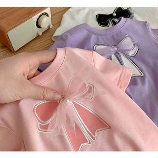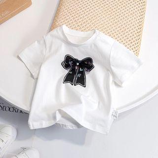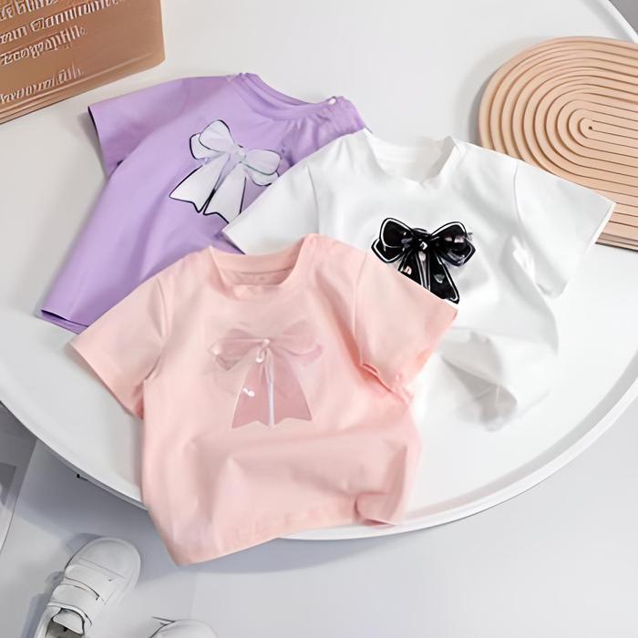 [PRINCESS KESLI] 1-8 TAHUN CROPTOP TSHIRT PITA LENGAN PENDEK KAOS ANAK PEREMPUAN LUCU BAHAN KATUN LEMBUT NYAMAN KIDS - WHITE, 100(2-3 TAHUN)