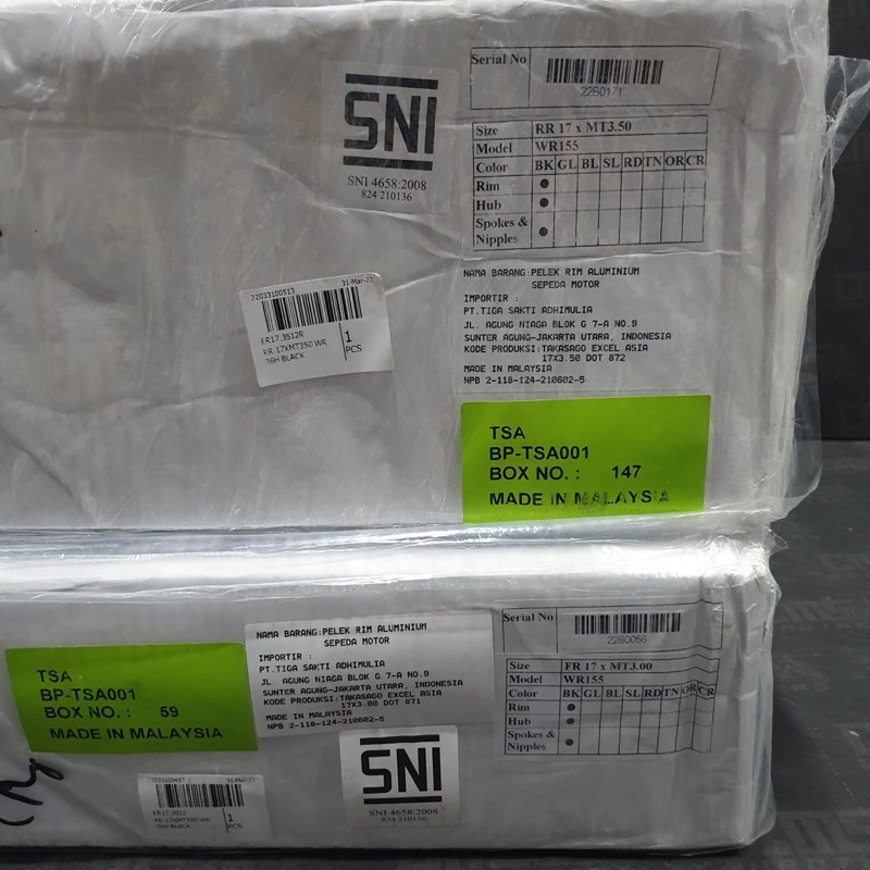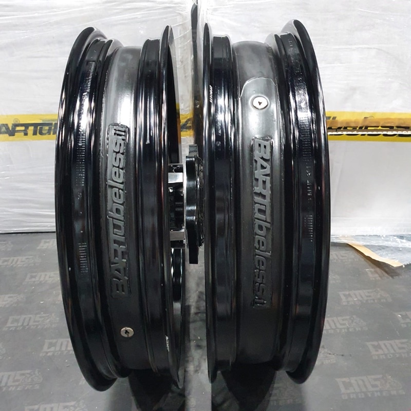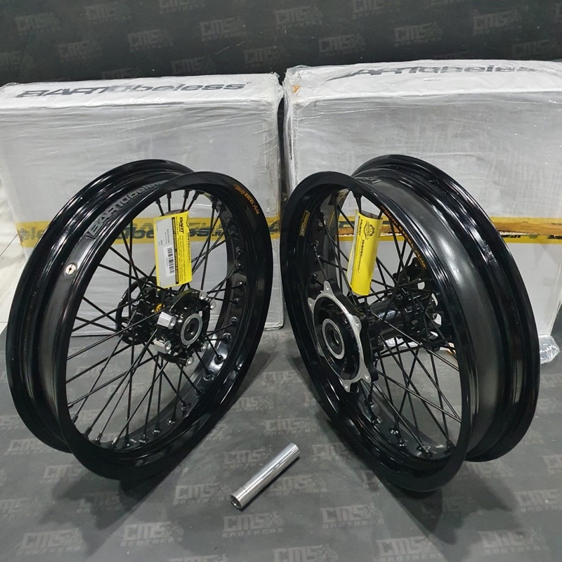 Velg Set Bartubeless Takasago Excel Asia Supermoto 17 x 300 dan 17 x 350 Yamaha WR 155 Hitam