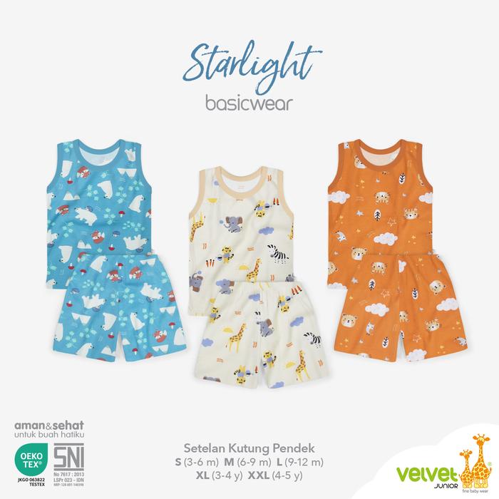 3SETEL | TERBARU SETELAN VELVET JUNIOR BASICWEAR MOTIF LENGAN KUTUNG, PENDEK, CPR, PANJANG | SIZE S-XXL .BAYI - STARLIGHT ( KUTUNG ), ( S )