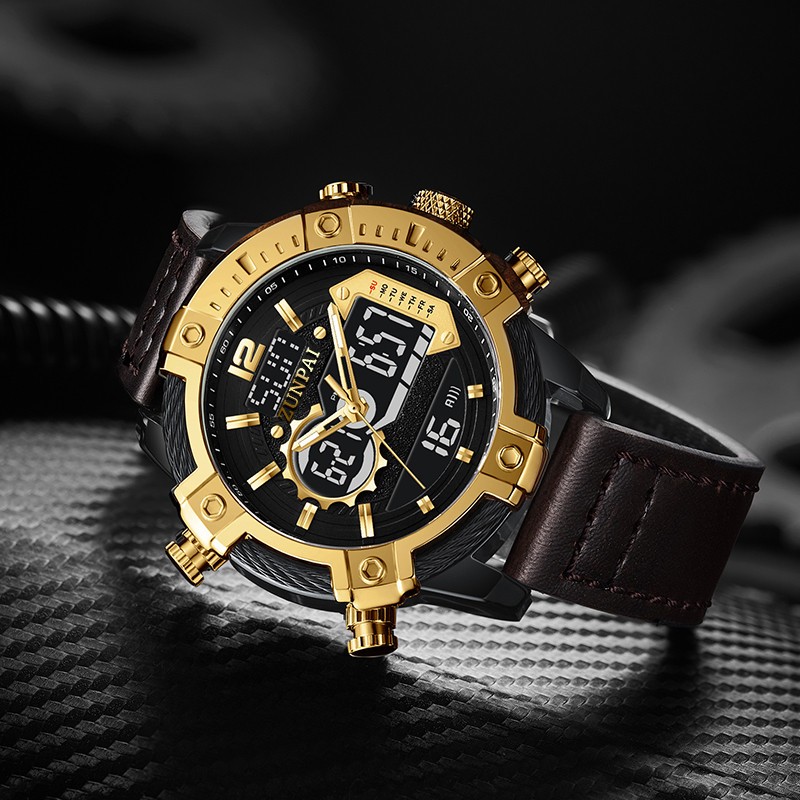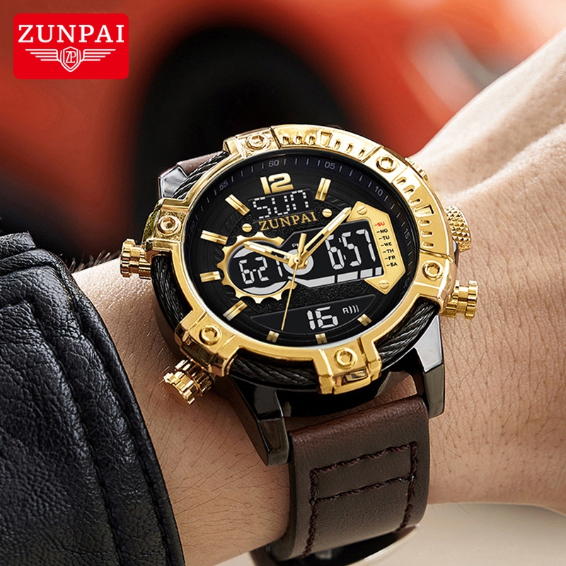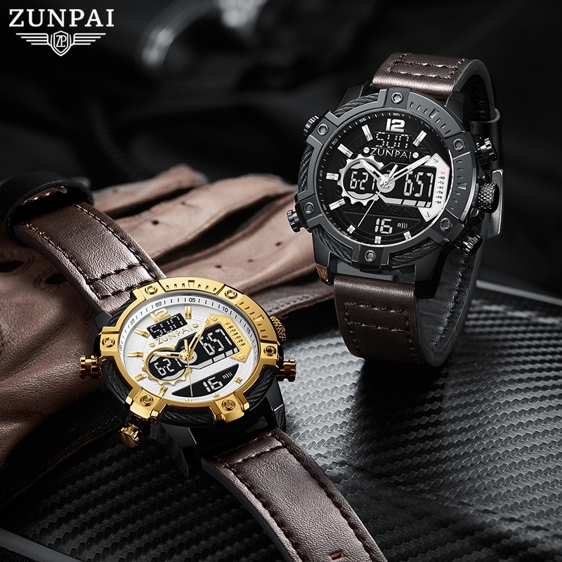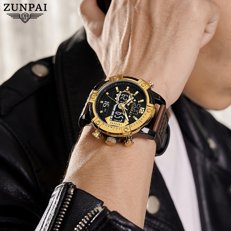 ZUNPAI Jam Tangan Pria Anti Air Asli Terbaru Kelas Atas Tali Kulit Hitam Jam Pria Fashion Keren Olahraga Multifungsi Chr